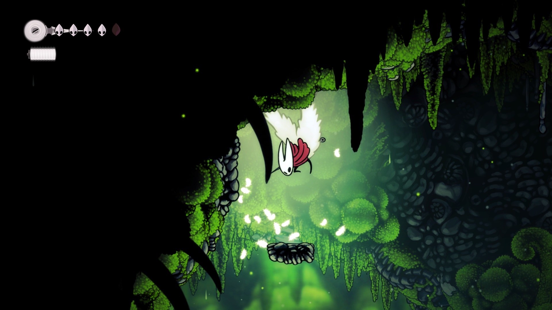 Как же побег из тюрячки за голую Хорнет отдаёт вайбами первой части. Несложно, забавно, прыжковые паззлы простые, всякие смешнявки через каждые несколько комнат, ламповая секретка с жуком-хикканом, которого надо выманивать музыкой, карта на спине зэка.