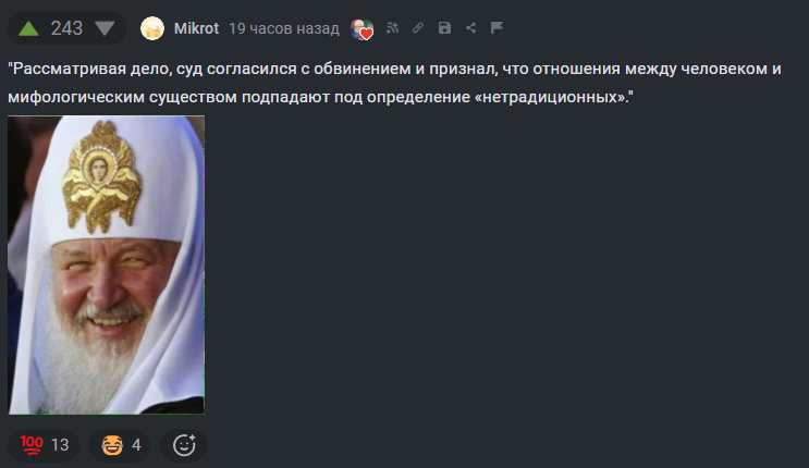 >>50237911 >>50237918 Это богоугодные новости? >РПЦ разрешила мужчинам целовать друг друга в губы. Православие не запрещает верующим одного пола также целовать друг друга в щеки и плечи, если традиции позволяют такого рода приветствие, отметил иеромонах Макарий. >Он добавил, что в Священном Писании Нового Завета апостол Павел писал: «Приветствуйте друг друга святым лобзанием». При этом там не говорится, что мужчины могут целовать только женщин, а мужчины с мужчинами или женщины с женщинами целоваться не должны.