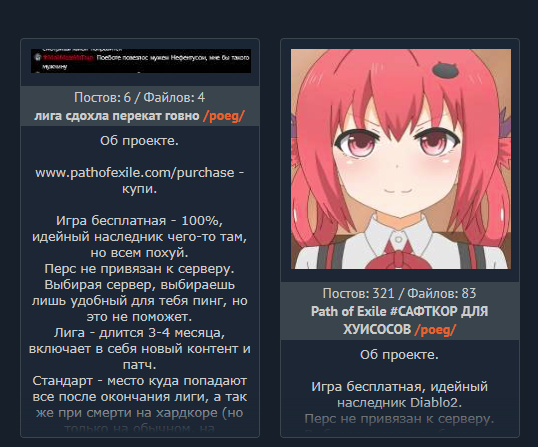 а когда будут новые статьи на неолурке?! например хорошей темой для написания будет являться недавнее глобальное изменение эндгейма игры Path of exile 2 связанное с удалением башен у него есть как плюсы так и минусы например больше не нужно тратить час игры на замаз нескольких башен для получения СОКА Я считаю автору стоит детально изучить новый патч вышедший совсем недавно лично опробовать его в игре зайти к стримерам узнать их мнение включить на ютубе видео протыка с погающим ебальником на превью после чего будучи полностью компетентным сесть за написание новой статьи впоследствии выложив сюда ссылку для ознакомления жаждущим знаний новичкам я рыдала горькими слезами представляя как взрослый мужчина чья голова наполнена многолетним опытом и мудростью скрупулезно изучал новый патч с целью просвятить своих юных новичков в игру Path of exile 2 зная что взамен он получит ни капли благодарности