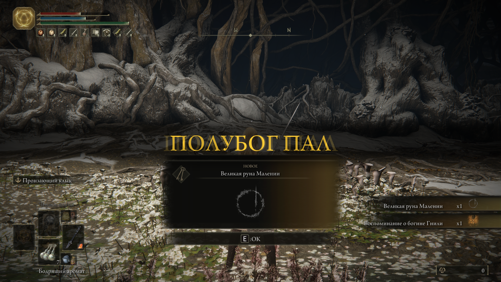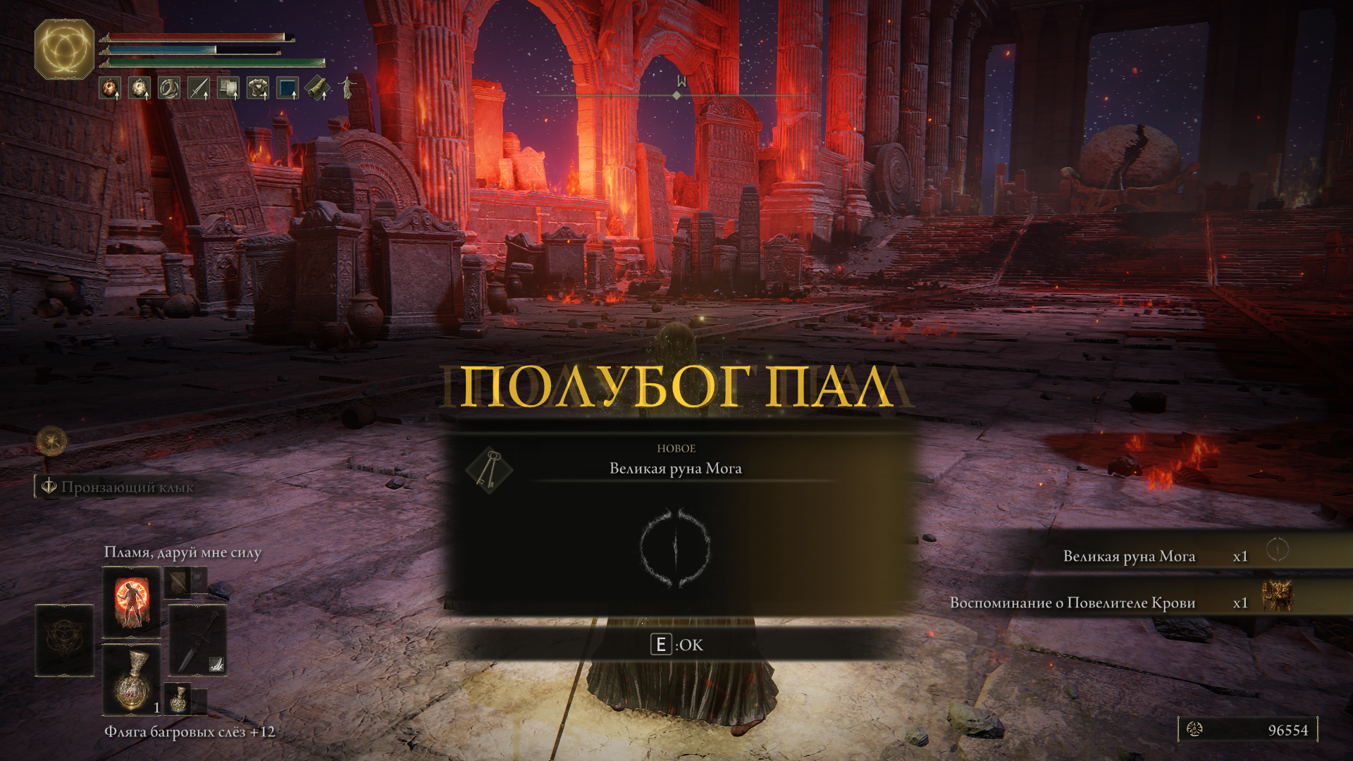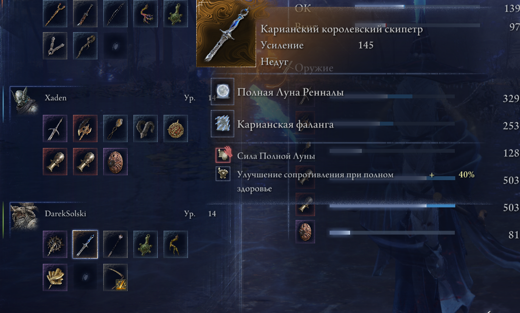 >>50355946 Луна Ранни - очень много урона и -40% к резистам врага на минуту. Лучшая открывашка для почти любого боя и наиэлегантнейшее решение, когда PCR взлетает со сферами. Луна Ренналы - бьет сильнее, но только -20% к резистам. Комета ночи - парные горгульи в Нокроне до тебя даже дойти не успеют. Карианский резак - лучший дпс во всей магии. Спиральный осколок - при правильной раскачке укладывают Пласидусакса и Элден Биста еще до того, как те закончат свою первую атаку. Метательный камень - за три применения сбивает баланс кристаллийцу, за четыре - дракону блестящих камней. Зачарованные земли - +25% к магическому урону, стакается со всем.