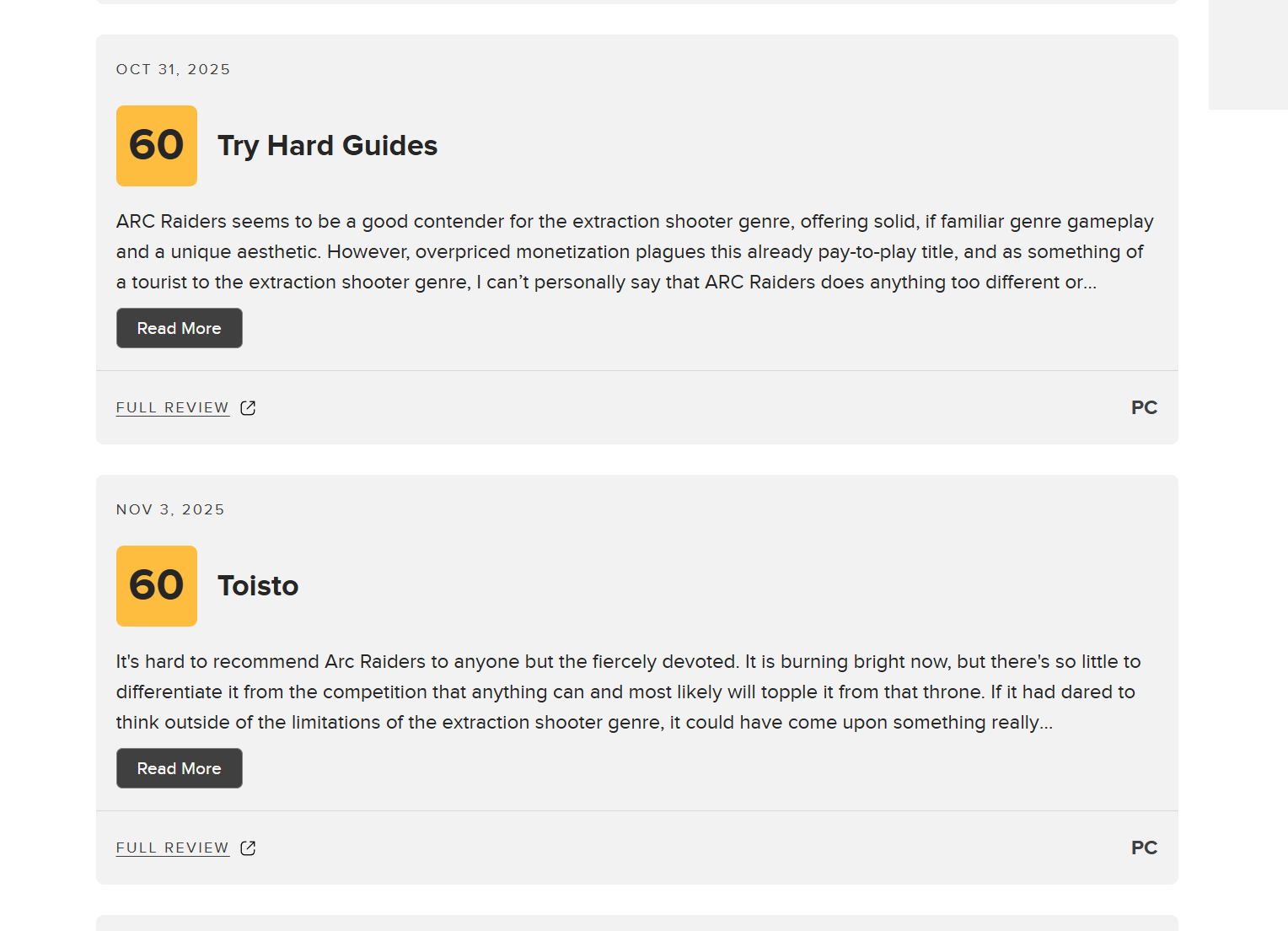 >>50410865 >Лучше купите тарков ну пожалуйста Тарков это мейнстрим жанра. Именно жанра в смысле геймлупа - выход в рейд, выживание, пвп, лутание, экстракшн. Нет ничего плохого в том чтобы сравнивать игру с родоначальником жанра, от которого она и пытается откусить аудиторию. Как например сравнивать апекс с пабгом в жанре батлроялей. Апекс смог откусить аудиторию потому что принёс в жанр много нового. Арк ничего нового не привносит.