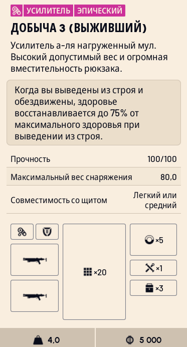 >>50400739 Оружие не прокачивается в смысле какой-то прогрессии, типа вот есть у тебя оружие и ты его всю игру качаешь, потому что после смерти оружие проёбывается. Но у каждого оружия есть 3-4 слота апгрейда (наствольник, магазин не у всех, рукоятка, приклад), и эти апгрейды тоже ранжируются от обычных до легендарных. Апгрейды можно крафтить на верстаках.