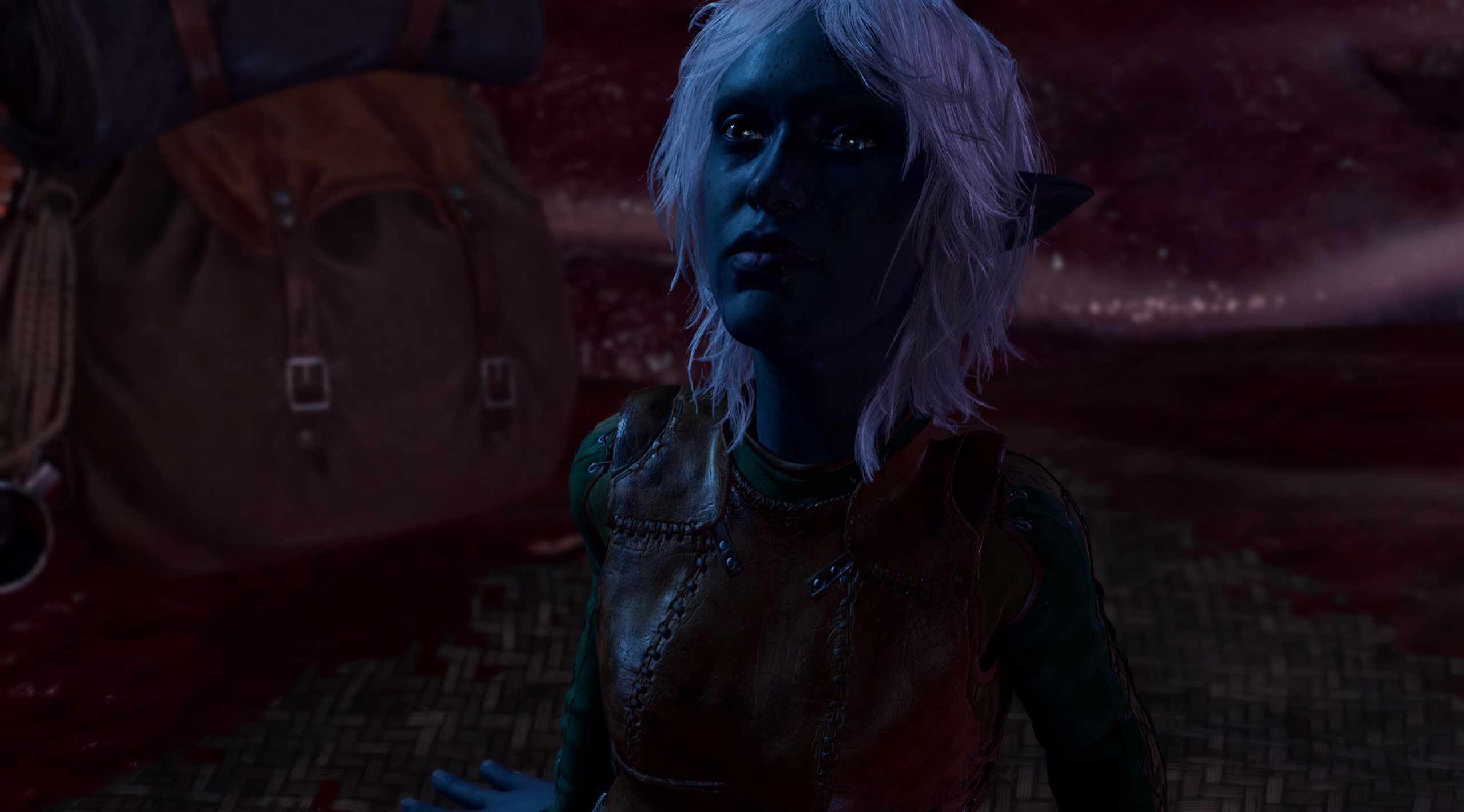 Лизку трансмогом наряжал как мог, чтобы соответствовать. Щас взял Уилла на квест Мизоры. Ебать он гачемученик нахуй - голый торс, портупея, баалистские наплечники, кожаная маска.