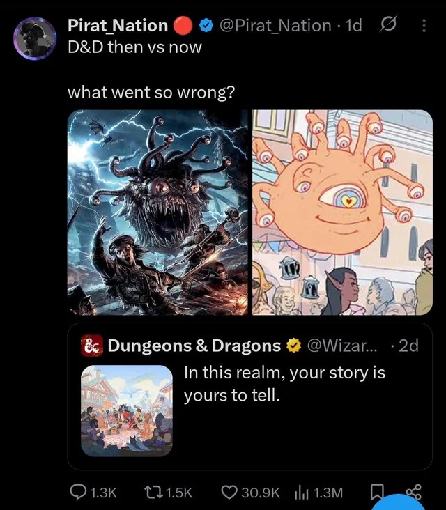 >>50320095 Не обязательно все в дпс считать. Что толку с твоих атак при хите 35-45% или когда тебя нахлобучивают спеллом на инт/мудрость или числом. Боссы в днд скейлятся не столько хитпоинтами, сколько перками, аурами, спеллами.