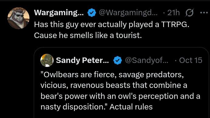 >>50412477 В ДнД на низких уровнях милишники сильнее магов, но на высоких наоборот маги сильнее милишников. Проблема в том, что в игре кап всего 12 уровней из 20, поэтому игра заканчивается до того, как маги начинают гнуть вселенную. Но есть хоумбрю заклинание 9 уровня с 30d6+120 урона, можешь примерно почувствовать разницу. Алсо, волшебник так-то не дамагер. Это мастер на все руки, у которого для любой ситуации найдётся подходящее заклинание. Дамагер это, скорее, чародей с его двойным кастом. А Минска сделали следопытом по традиции. Его создали в Dark Sun, где не было такого класса как варвар, поэтому его создатель сделал его следопытом и дал ему абилку ярость как у варвара. В те далёкие времена следопыт был сабклассом воина, а не отдельным классом, что-то вроде воина в лёгкой броне с выживачем. В современных реалиях Минск это скорее чистый варвар или следопыт/варвар.