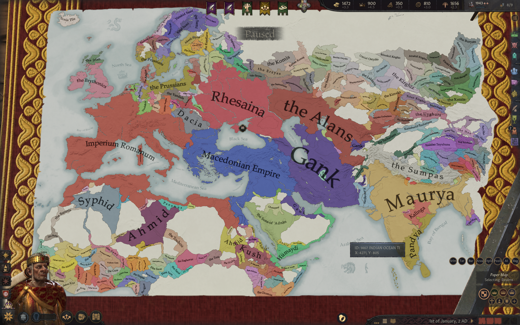 Больше особо ничего не менял, да и в принципе не хотел. Вот пришли Гунны, разъебали Ресайну, случилось переселение народов, потом Христианство, Рим отступил к Альпам, Ислам ебнул Македонцев и Персов, вся хуйня. Заебнее было бы даже редактировать конвертированный сейв нежели так сделать. Хотелось что-то интересное сделать с Египтом, но в крестах Египетская культура один хер уже Арабская, с таким говном каши уже не сваришь.
