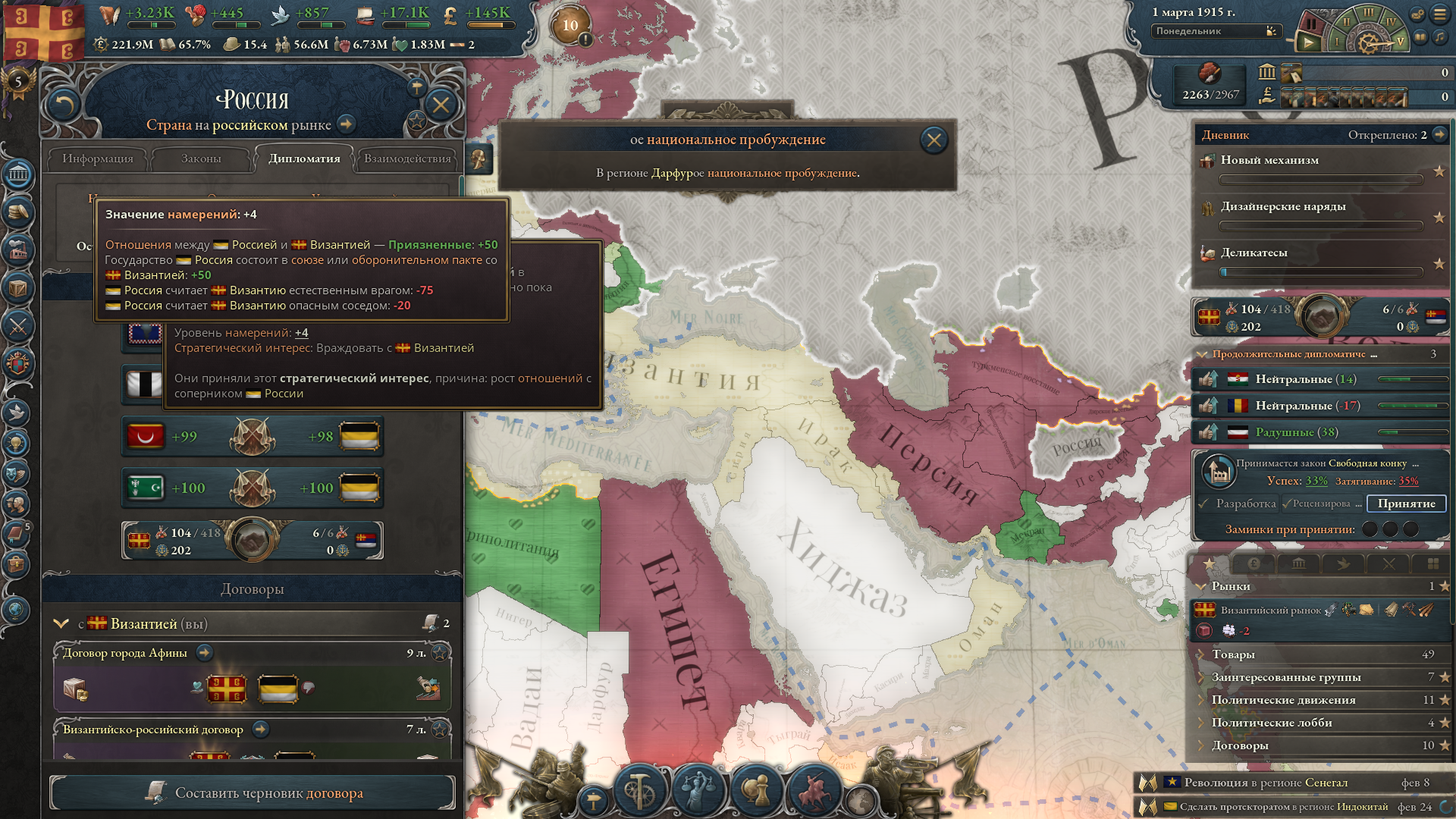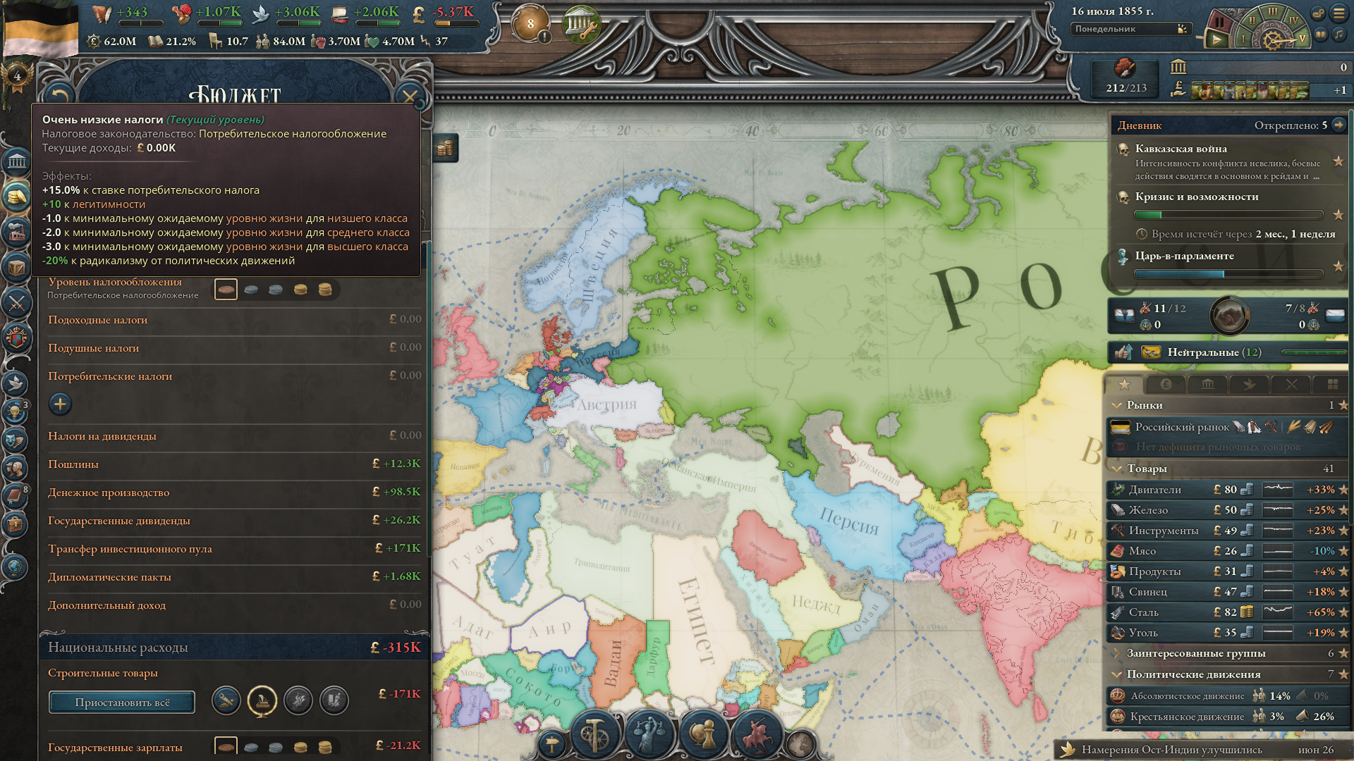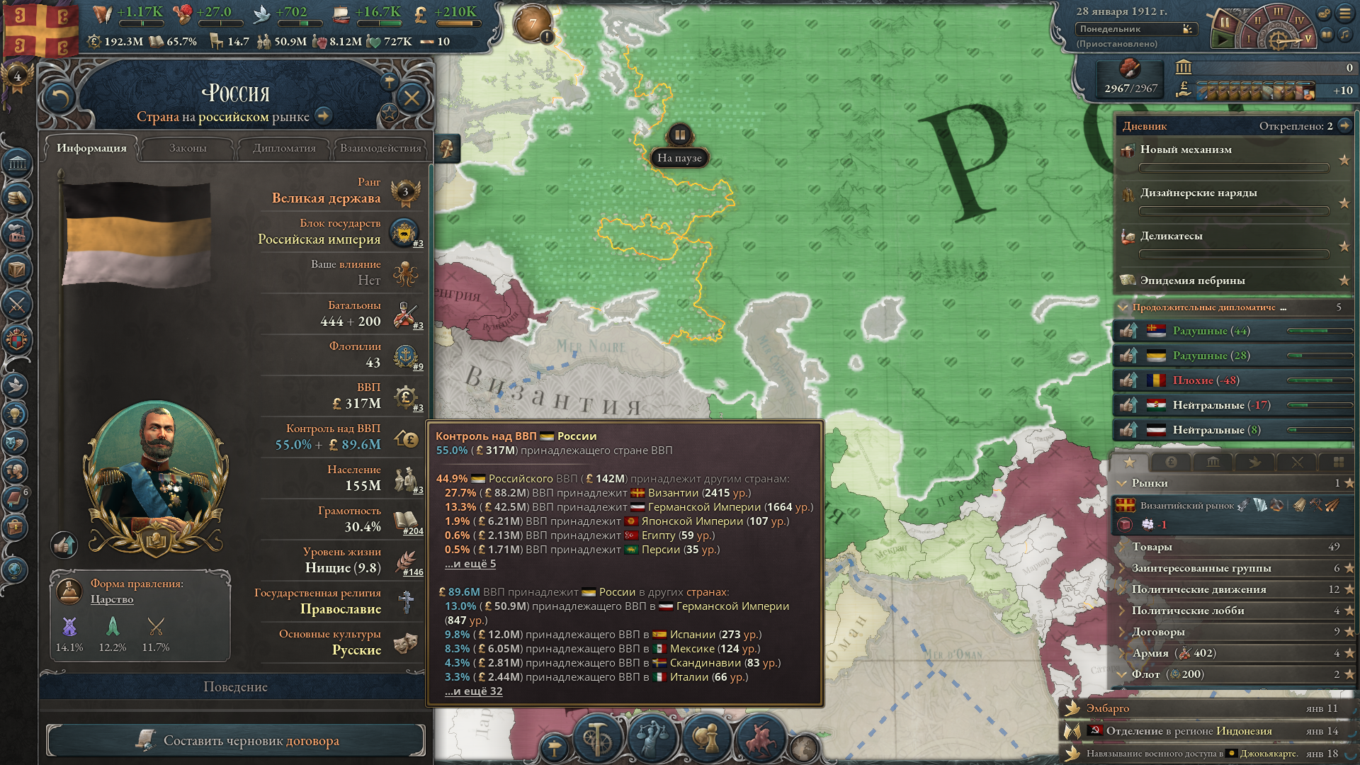 Вопрос номер 2. Нахуй в этой игре воевать для присоединения земель, если это не пиздец лакомый кусок с годным RGO и климатической зоной? Воевать для тряски бабок - это окей, но захват территорий ради чего? Проблем со стабильностью, еще +1 менеджмент локации которых и без того десятки или где-то сотни.