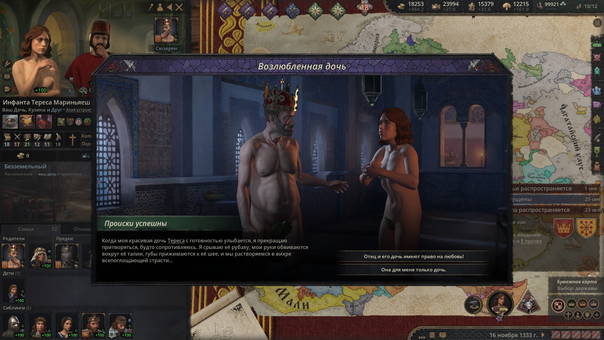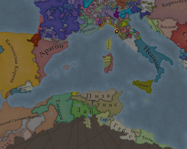 Во второй партии чуть получше дела. Португалия в унии, Гранада присоединяется, Валенсия и Арагон вассалы. Дальше расширяться либо на Францию (да на нахуй), либо в Марокко (но мне этот вариант тоже не особо нравится).