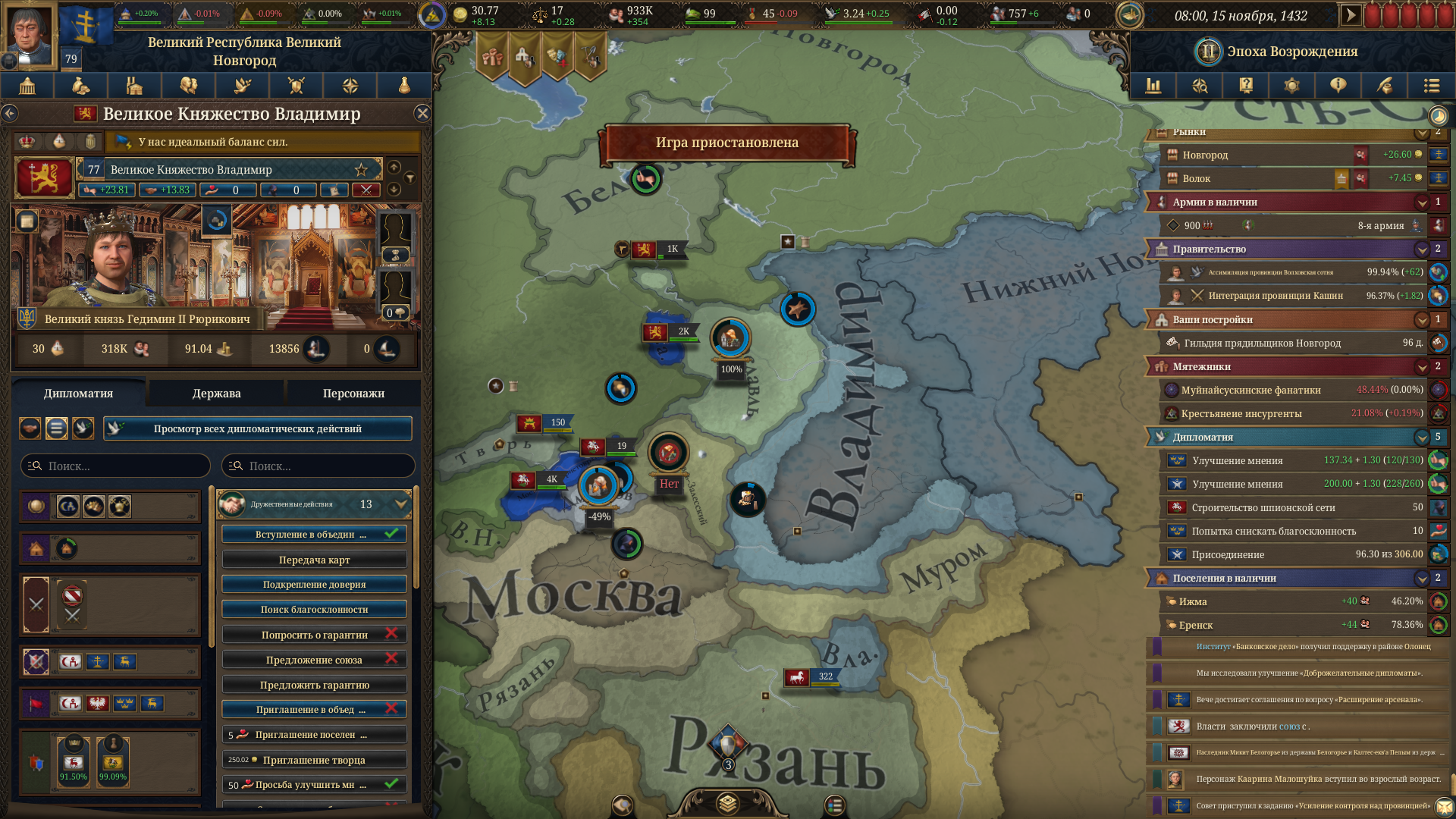Играю за Москву и меня так заебали эти вассалы. Их сейчас 20+ штук, выделял почти каждую провку потому что по другому тупо нельзя, так с каждым из них надо 150 месяцев улучшать отношения а потом и присоединять, примерно 3 года если маленький, Смоленск вообще пишет что будет 80 лет присоединяться, а у меня ещё Пермь которая размером как я. Не знаю я что делать дальше, лимит на вассалов уже достигнут, дипломаты трещат по швам, приходится сидеть десятилетиями, интегрировать когда ирл в это время уже Русское царство до Кавказа дошло. Жду модов для фикса этой хуйни.