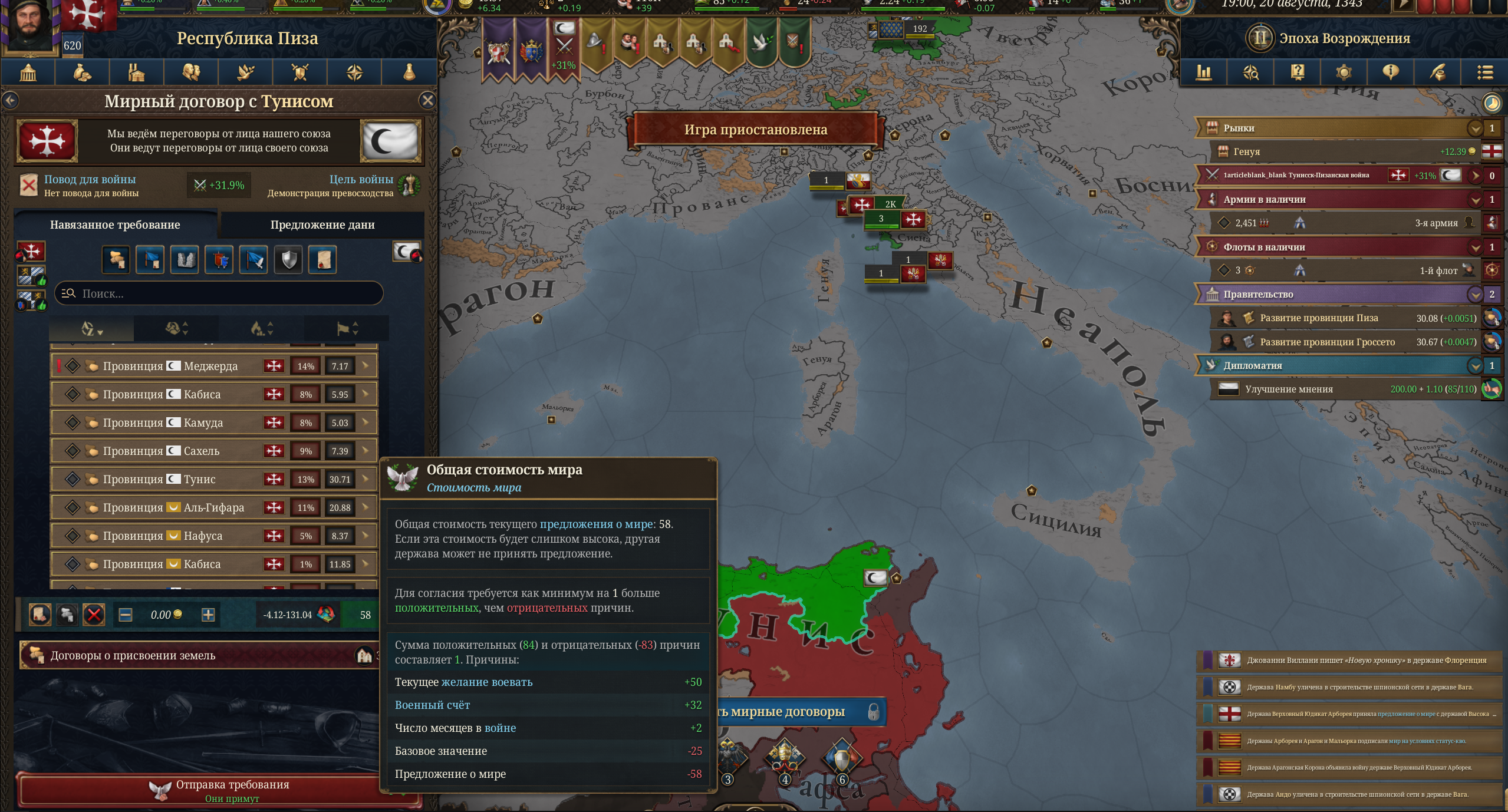 >>50417347 Все так, думал что набрал нормально войска и полез на ебучий Тунис в коалиции с папой римским за Венецию, но в итоге сосу сейчас. Ещё и первый краш словил за все время игры.