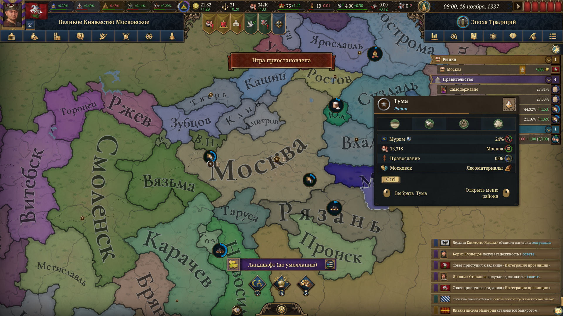 Еще вопрос. Лет 100 в лучшем случае, я так понимаю, все основные доходы с торговли обречены быть только в столице, где куча наемной силы, что дает возможность строить кучу производственных домиков, чтобы фармить бабки? В регионах кое-как что-то можно строить, сразу конверсия при неразвитом контроле в начале игры делит все попытки на ноль сделать денцентрализацию производства. Это так и должно работать или я нихуя не понимаю?