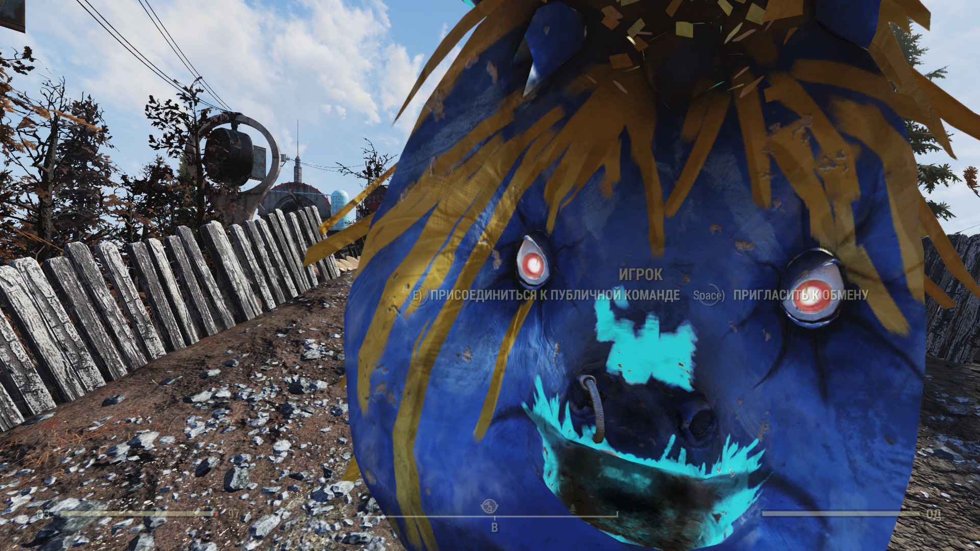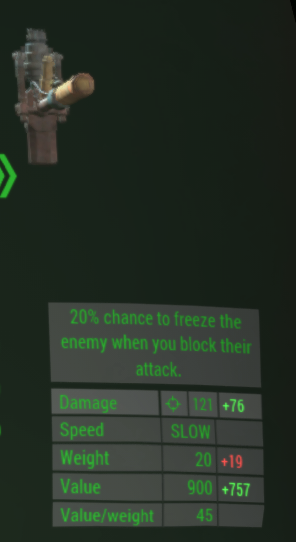 Помогите выбрать оружие ближнего боя Персонаж без силовой брони (пока) На пиках Рандомный легендарный супермолот Зубчик кромвеля или как он там Заточка пикми Харки на пиках видно