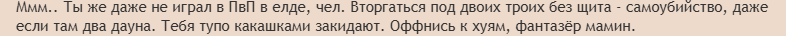 Ахаха, давно так не проигрывал. Ты бы ещё козырнул, что почти прошёл какую-нибудь часть душ или елдарик, скинув фотку Демона прибежища/Маргита/катсцены с переносом в поселение нежити.