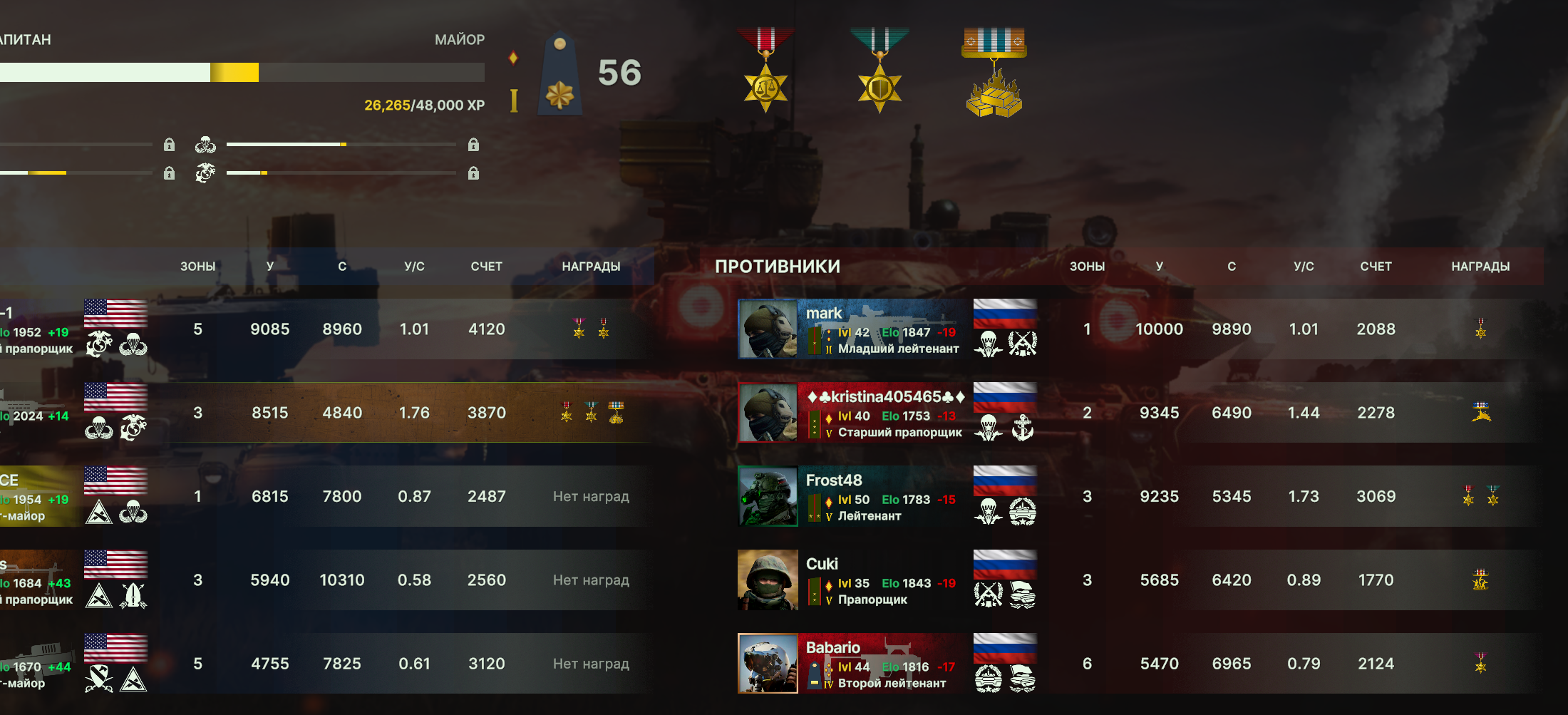 Сейчас пытаюсь играть неспеша, в основном через пехоту, разведку и суппорт, зашёл сапог в обороне и антиматерия на открытых картах. Когда в меня выкатывают, вызываю катраны и аву. Немного пришло осознание, когда бороться за точку, а когда отходить к суплаю. До дымов ещё руки не дошли.