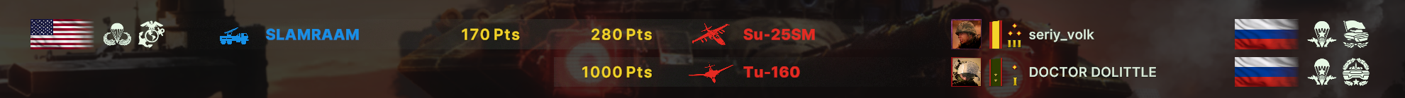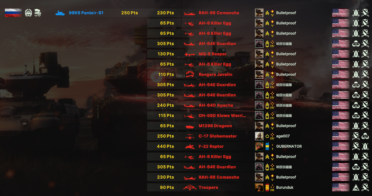 Плюсую, взял 2к на РФ, потом пересел на США, которыми играл пару раз до этого, еще 100 эло налутал танк+соком за вечер. Сентик, f-35, айронтандер, silent hawk, яйца, танки, бредли, тапки и блять куча охуевшей пехоты. Просто тычешь лазером и фраги набиваешь под пиво.