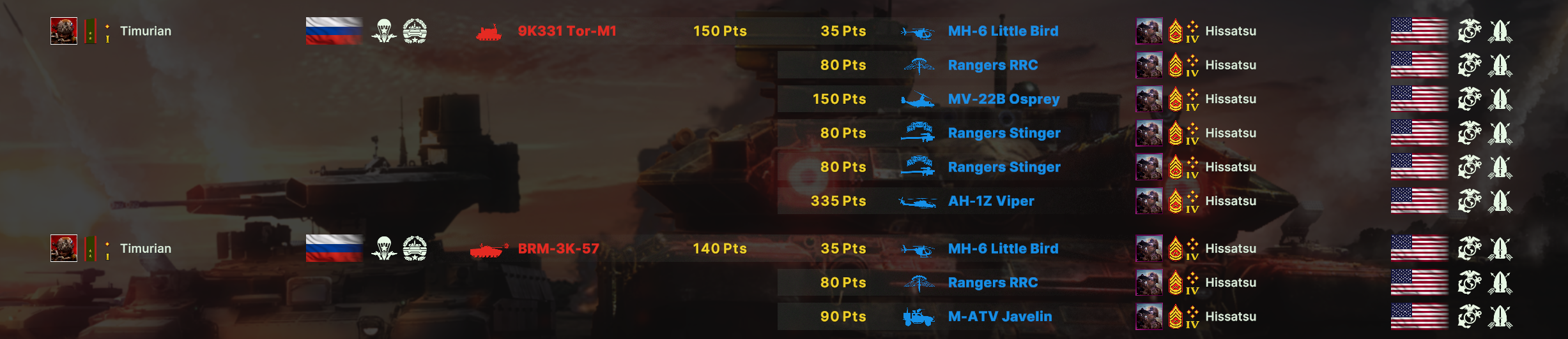 ССО + Страйкеры - пизда. Саппорт очков просто теперь нет. Даже фулл комплект ПВО + Химмарсы не взять. Зато можно срать пехотой и страйкерами. М-60 лопается с 1 попадания ПЗРК РФ как и все вертолеты кроме апача.