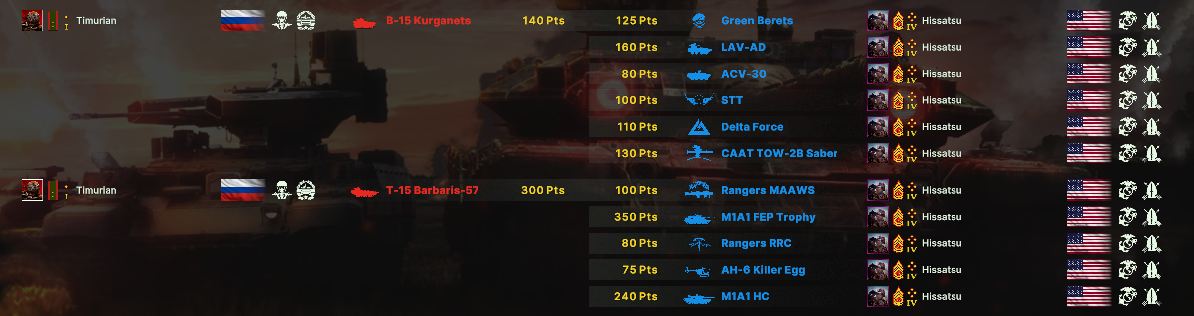 2400 эло @ Сбор лобби 15 минут @ Поиск опонентов 15 минут @ Опоненты - стак нбк @ Проигрыш @ Повтор @ Проигрыш @ Хотите повторить или смените фракцию в надежде на изменения? @ Сыграть за США @ Стак нбк на РФ