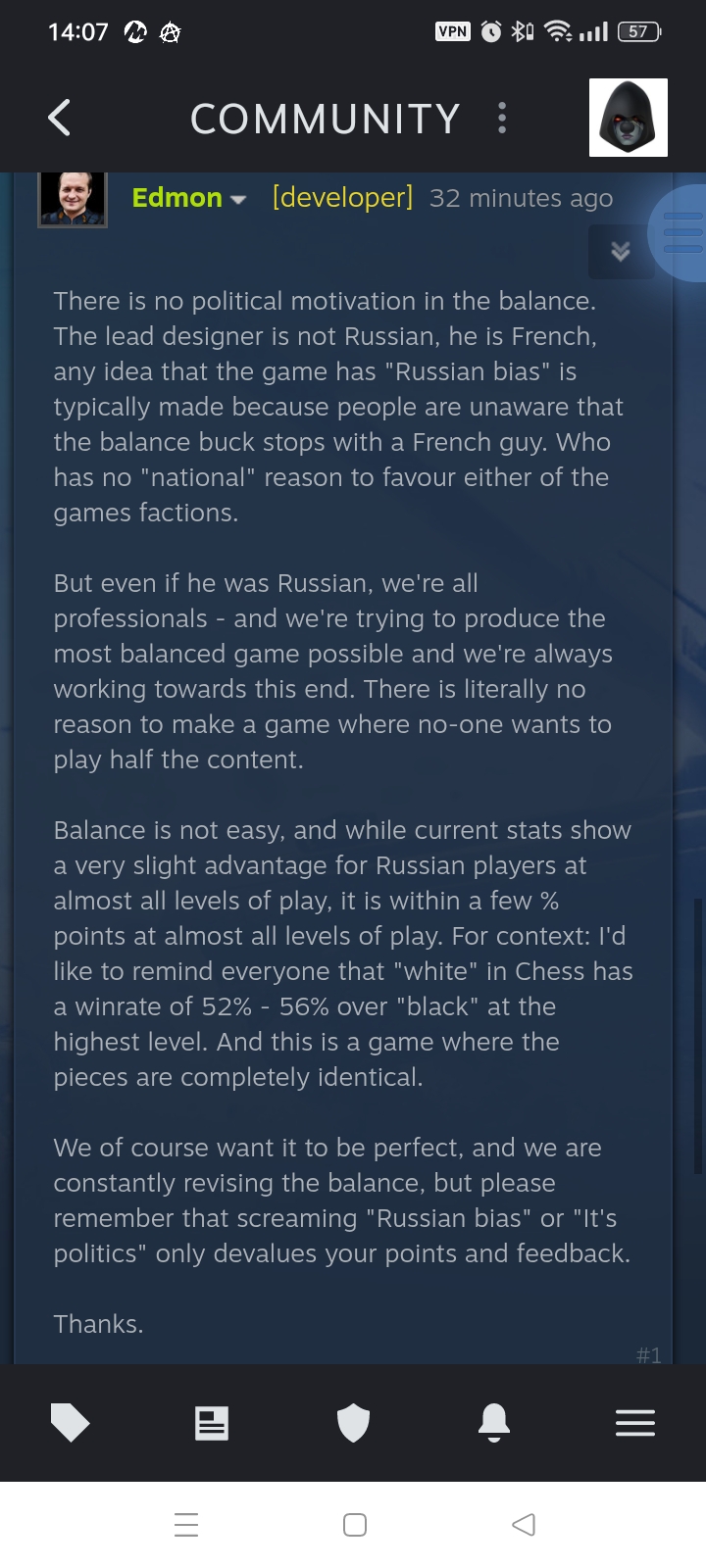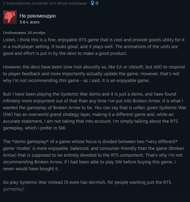 >>50268250 Вы неправильно всë это воспринимаете. Все эти баги на самом деле не баги, а фичи. Не едущие юниты, пропавшие самолëты, неточные параметры, всë это добавляет реализма, интересности и изюминки игре. Ведь танк может застрять, сломаться, самолëт сбит по пути или тупо ракет нет на базе. Ведь это может у всех случиться - значит баланс. Реально новый уровень игры жанра ртс, а у вас бомбит.