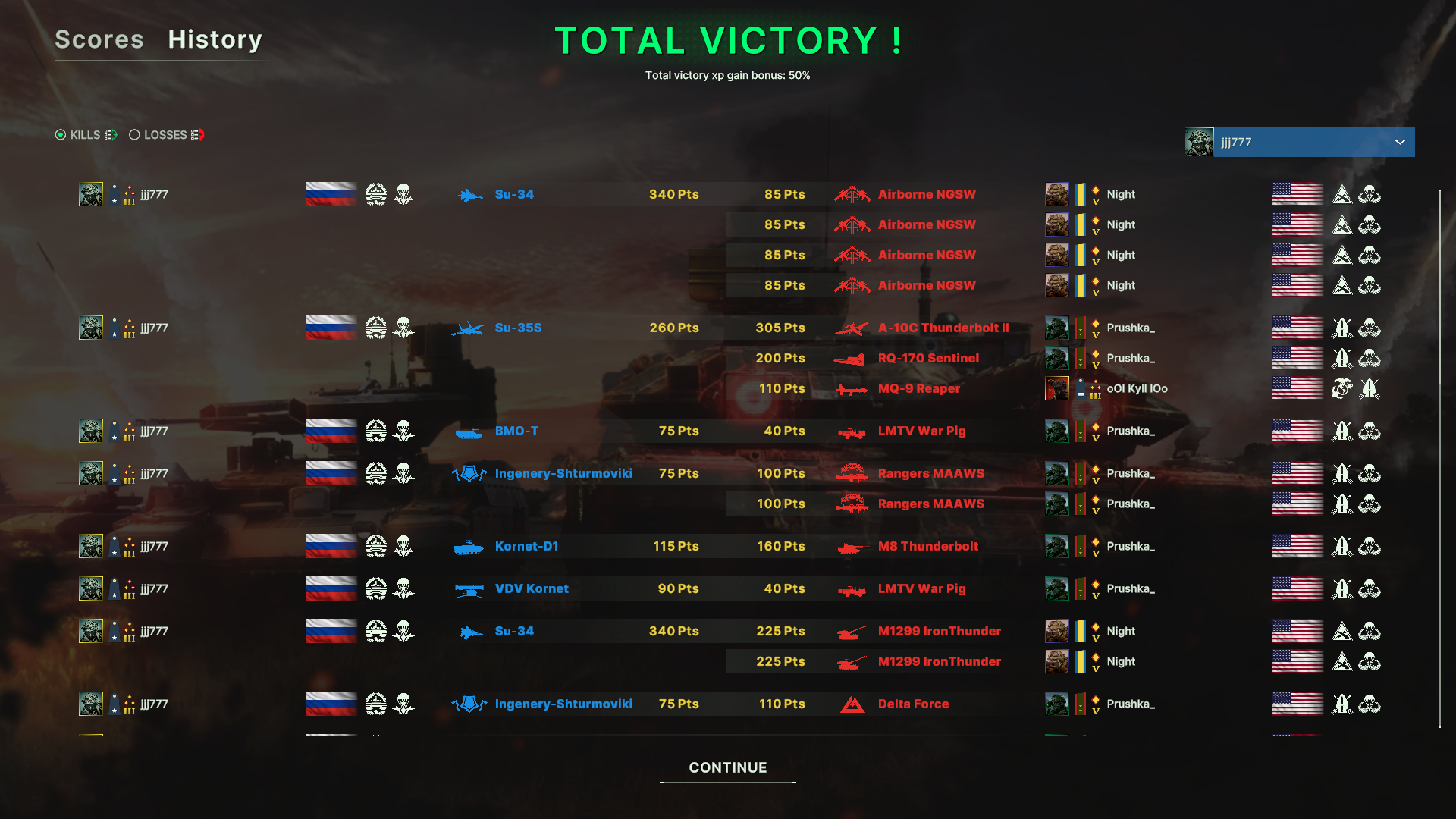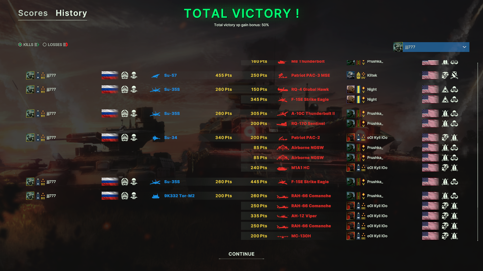 Впервые так много наубивал наверно, видимо карта крохотная, единственная с островом. Интересный мачтмайкинг с челиком 1900 vs 800, наверно тащил кого-то наверх, но играл он отвратно кста, спамил самолёты и арту, несколько раз выезжал по земле и при этом такое кд. Меня сминали в ноль один раз в середине игры, оставалось пара суплаев, снайперов и коалиция, горел sudden death, был во уверен в поражении.