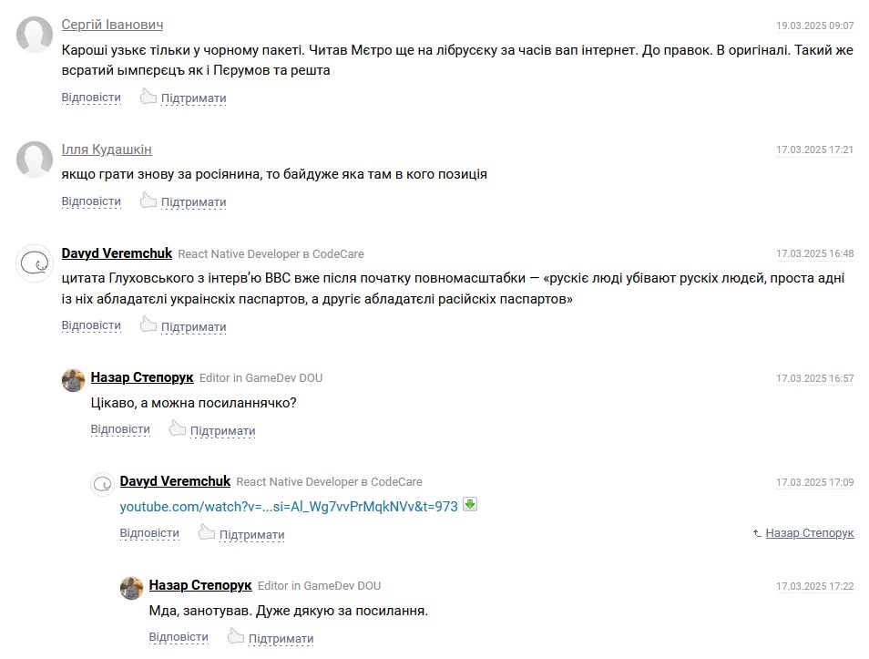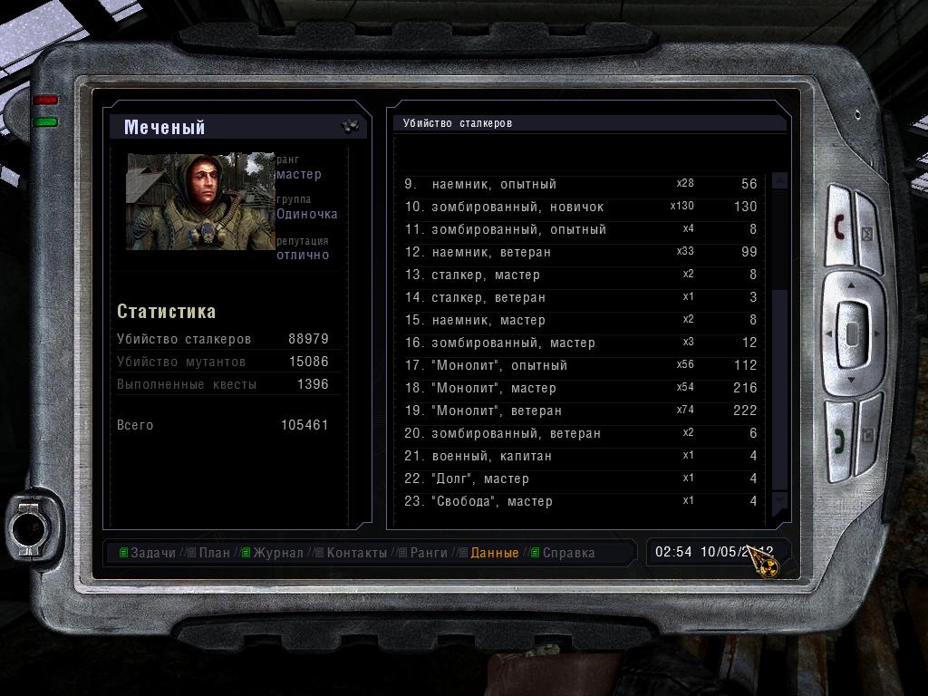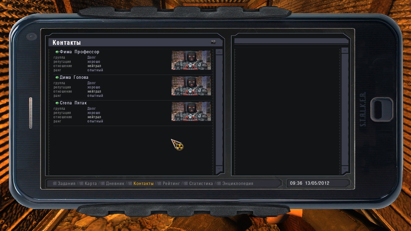 >>50308085 Олег Яворский: Со своей группой сделал легендарные треки, на которых до сих пор наживается новопыс. Пробил поездки в ЧЗО, когда это еще не было популярно, и ездил в первую из них для сбора материалов. Занимался переводами. Юрий Бесараб: Написал четыре рассказа на конкурс, которые попали в сборник, так и оказался в КМах. Евгений Кучма: Исправлял русский текст, занимался тестированием, у аддонов - локализацией. Подшаманивал со скриптами, уровнями и геймдизайном. Новопыс: Ряя, я КМ, у меня лапки из жопы