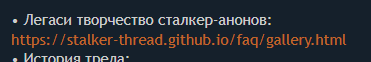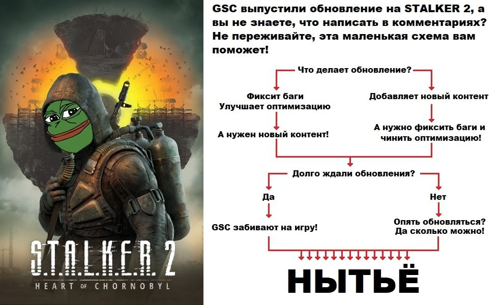 Напоминаю, что тред сталкера на сосаче состоит из: Григаплотей - постоянно кидаются на любую критику сталкера 2 им. жени хрюкоровича(становятся едой буквально для всех, да и вообще их забыли спросить). Бюреров-храуфагов - сидят в своих немытых подвальчиках, кидаясь говном во всех, кто решает отойди от канонов(их шизофазии, которая каждый раз меняется) по оригинальной трилогии, особый бугурт на с2 по многим причинам, объективным и/или нет(чаще нет). Билдозомби - стёрли свои 3см приборы на дрочке билдов, пытаясь найти суть ТСС(её нет, или есть?). Полтергейсты-отрицалы - пикируются с бюрерами, им не нравится всё, что есть в с2, но ничего не делают, чтобы показать как надо по их мнению(которое как жопа, есть у каждого). Новопыс-отмычек - вкатились во время с2, особо мягкие становятся едой для первых 4х категорий, когда высказывают хоть что либо, что им не нравится Чады-сталкеры-ветераны - ржут с мутантской пиздобратии и идут дальше, или подкармивают фауну, когда тред загибается.