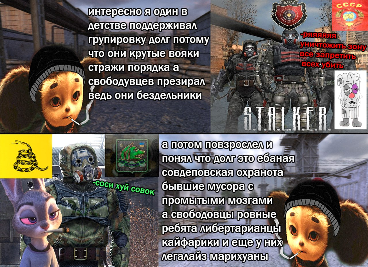 >>50306853 Долг, конечно же. Они за традиционные ценности. Смертельным аномалиям, опасным мутантам, а также анархистам и бандитам и гомосексуалистам не остановить «Долг»! Мы победоносной поступью идём на помощь гражданам всей планеты!