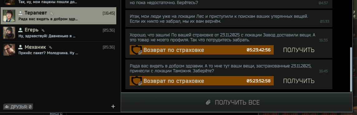 А еще про страховку в пве, я когда начинал играть помнб что не всегда вме возвращалось, но чем выше были отношения с таргошом тем быстрее и в полном объеме возвращались вещи, видимо сейчас планка возврата немного ниже чем раньше.