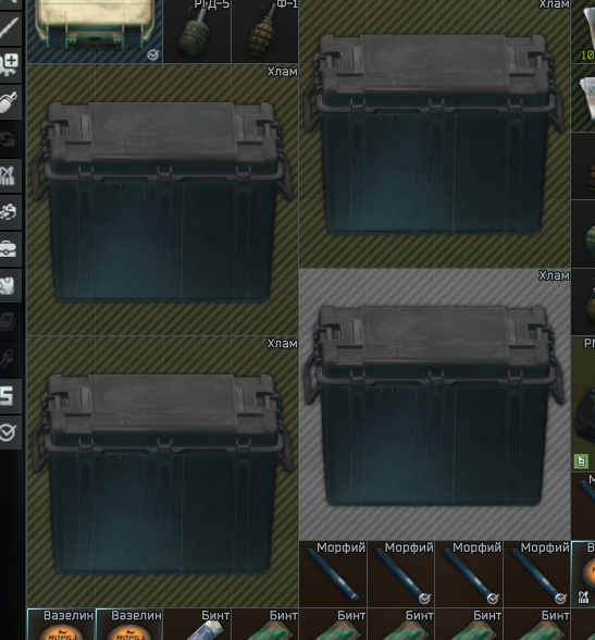 >>50477678 у меня 2 хламовника, подабавлял нужное в избранное и собираю только его, я не занимаюсь пылесосингом ваще всего - ток ценное и избранное для убежки. стволы не храни - бегай с чем то 1, убили - покупай новое. ну максимум 1 ствол в запас - они ж место крадут. тож самое и шмоток касается. ты ж в пве играешь, можешь ваще в рейд выходить с витязем и без шлема и рюкзака - всё у чвк отберешь