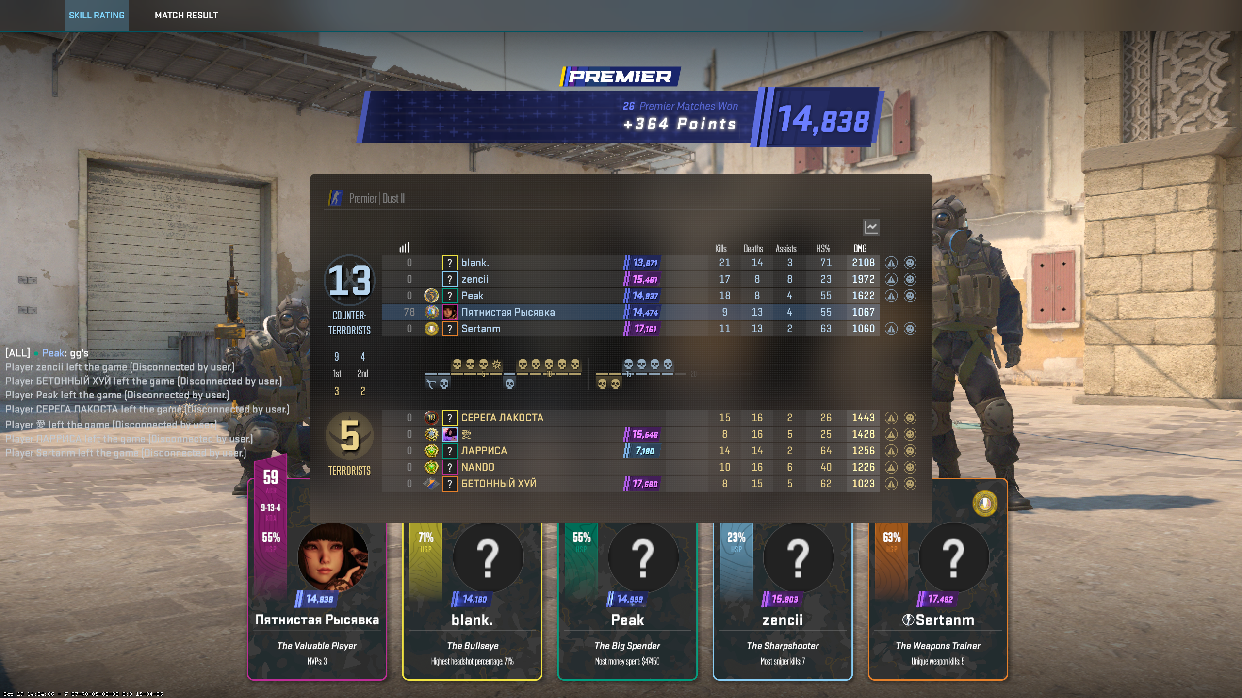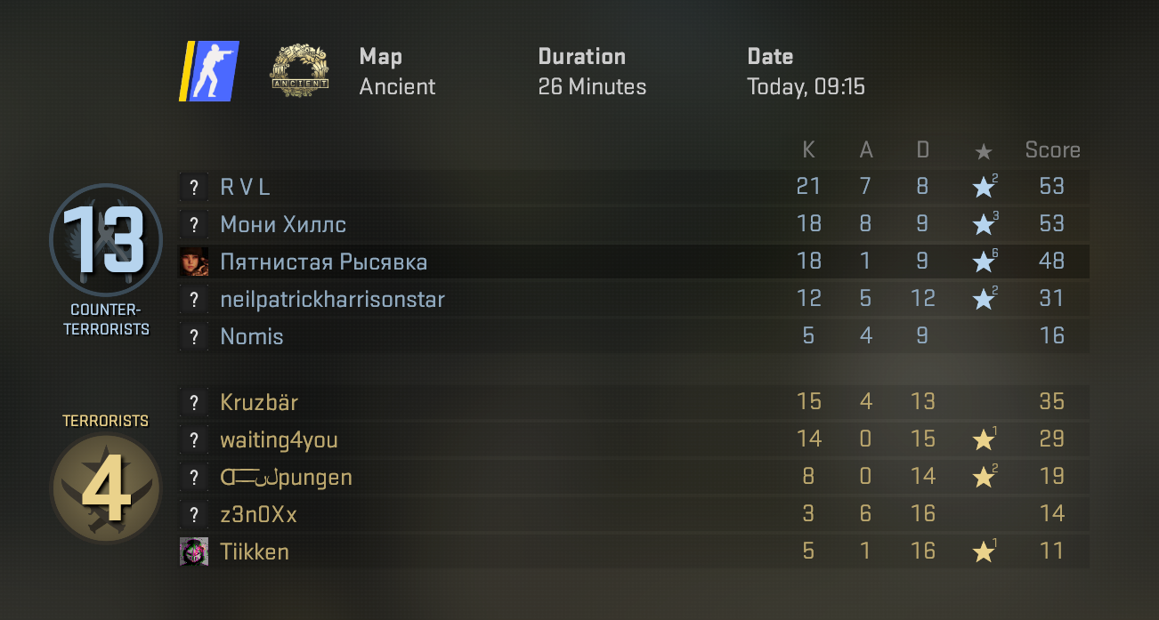 А теперь смотри, что происходит: я выхожу играть, не читерю, просто делаю то, что умею, и меня начинают заливать репортами каждый божий раунд. Потому что для местных лузеров, которые не могут контрстрейф выучить за год, любой, кто попадает в голову больше двух раз за пол-игры — уже читак. И система, вместо того чтобы разбираться, тупо кидает меня в помойку с этими самыми читаками.