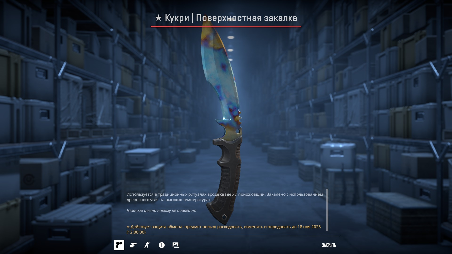 Сап, сегодня купил свой первый нож, случайно наткнулся на кукри поверхностная закалка прямо с завода за 25к, в стиме закалка начинается от 32к, как думаете он имеет какую-то ценность повышенную или я купил по справедливой цене 25к. Выглядит очень красиво конечно. Если ценность повышенная, то за сколько по вашему мнению после снятия трейдбана я смог бы теоретически ее попробовать продать.