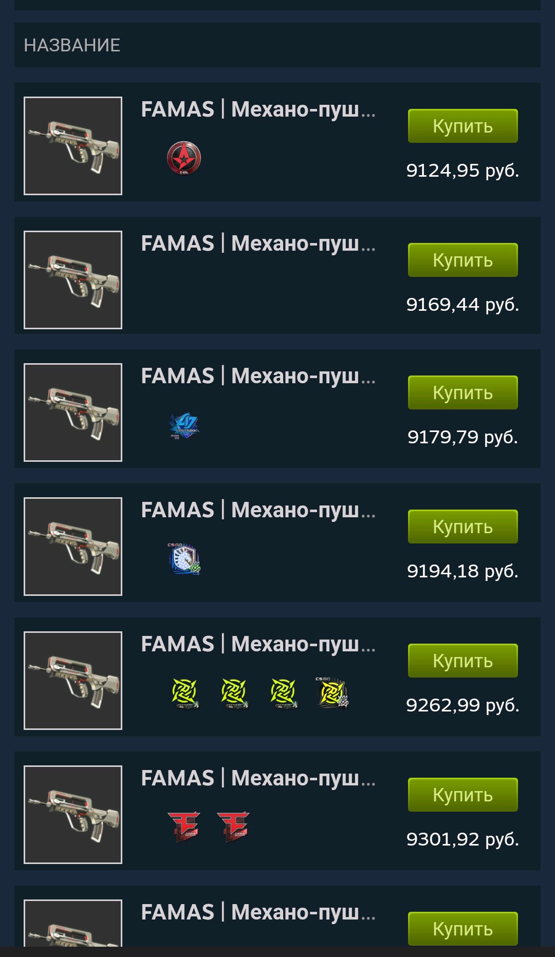 Господа, подскажите где посмотреть даже не знаю как сказать, ценность паттерна на оружии чтоли. Вот есть у меня из ящика mp7 just-smile fn 128 паттерн, полез на ксфлот, там их нет вообще. Значит ли это, что моё добро очень редкое и ценное или это просто говно которое никому не интересно. Спасибо если кто поможет выяснить.
