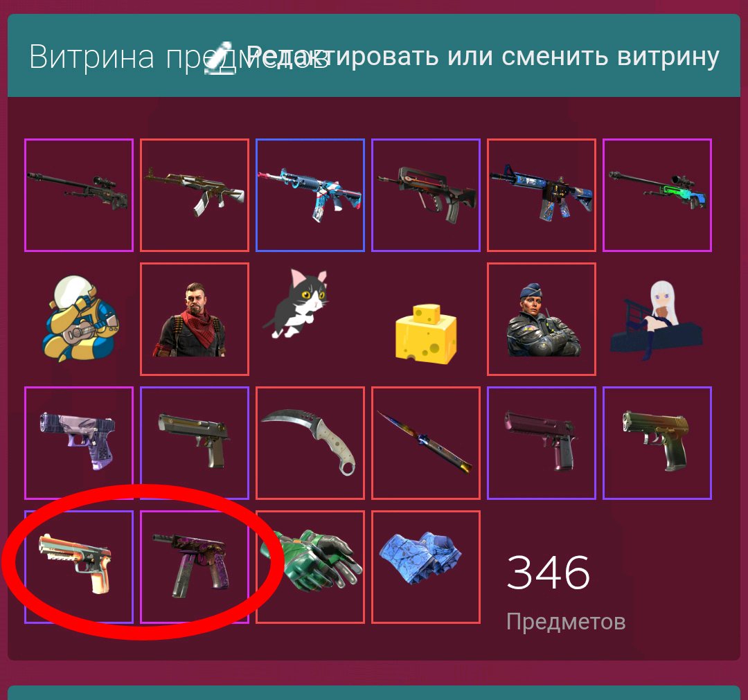 У меня глобальные проблемы. Короче, я же оформил витрину предметов, типа, вот террорист, у него слева чел на гитарке играет, типа аналогия со мной, я тоже на гитаре играю творческая личность, справа от него котик за крысой охотится, типа аналогия с террористами, они же атакуют - щимят КэТэшников которые крысят по своей природе. Справа тот самый КэТэшник. И в общем я хотел в обведенное место поставить будущий скин на эМКу S и USP-S, а по задумке половина скинов за КТ половина за ТТ и не получается их переставить слева на право, потому что котик тогда будет убегать, а такого же котика бегущего в другую сторону нет. Вот как быть? Если поставлю КэТэшные скины под террористом будет уже не комильфо. Пиздец. Просто пиздец.