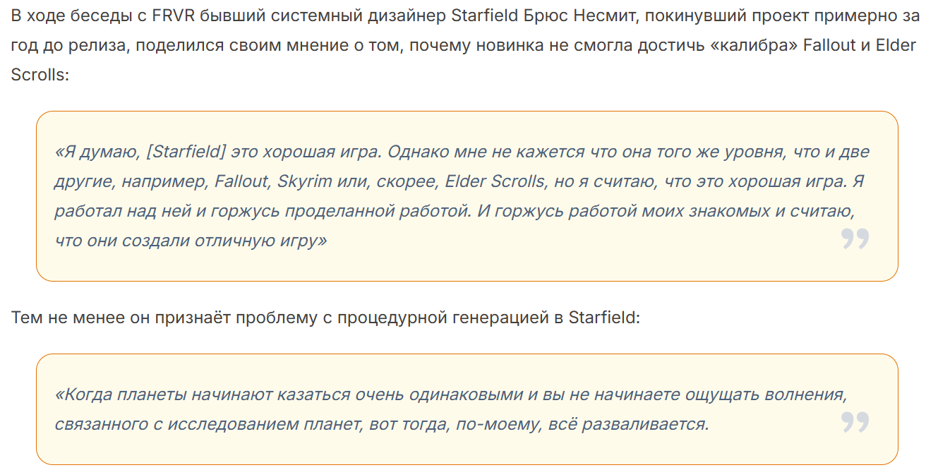 >>50464800 Гринд планеток в Старфилде и есть самое интересное, потому что квесты хуета и то как они поставлены. Проще придумать что ты землекоп ебаный и отыгрывать его, построив собственную базу по переработке. Интереса заслуживают короткие второстепенные квесты, а длинные линейки основных даже браться не стоит. Вот такая РПГ охуенная. Скайрим примерно таким же был, но с гораздо лучшей проработкой мира.