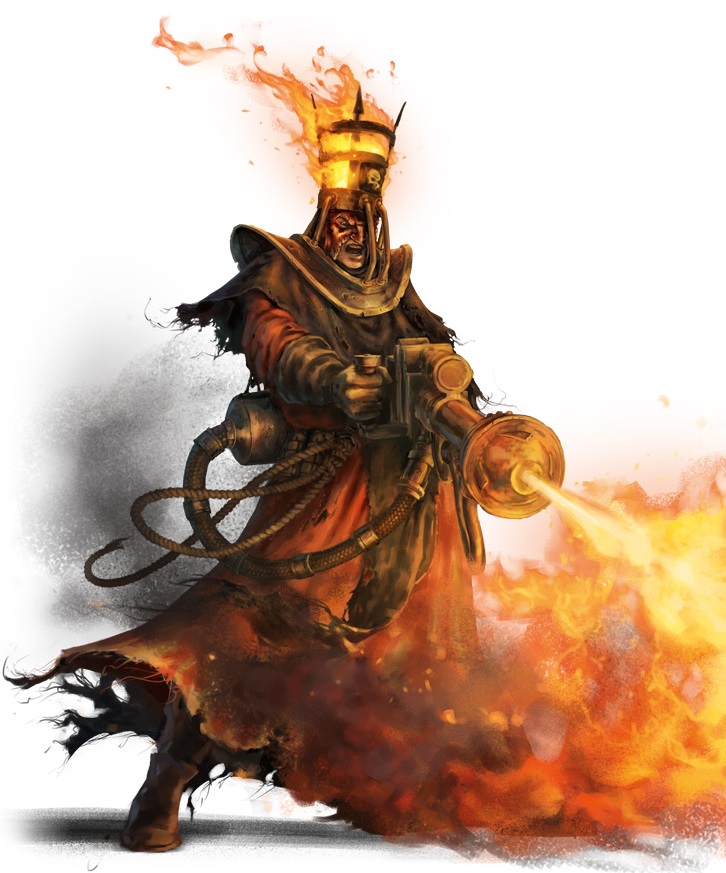 Хотя наверное Искупители подойдут: чудеса веры, много огнемётов, они в целом снаряжены поприличнее других Кавдоров. Но всё равно с натяжкой.