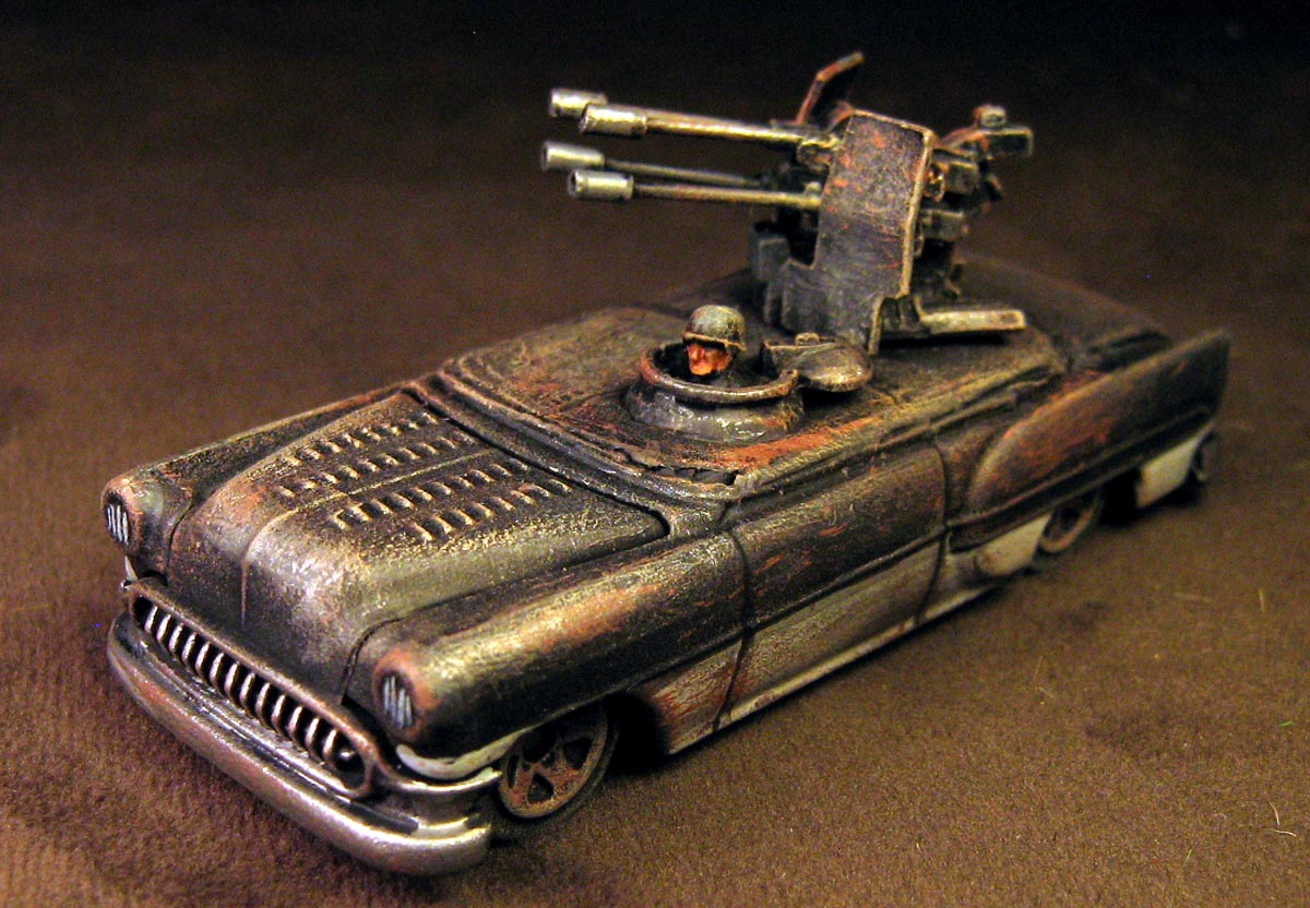 If you go with a toy car, look for 1:43 scale diecast models, which are just about the perfect size. They look great with just a few conversions (mosdy just adding some extra bitz) and repainting.