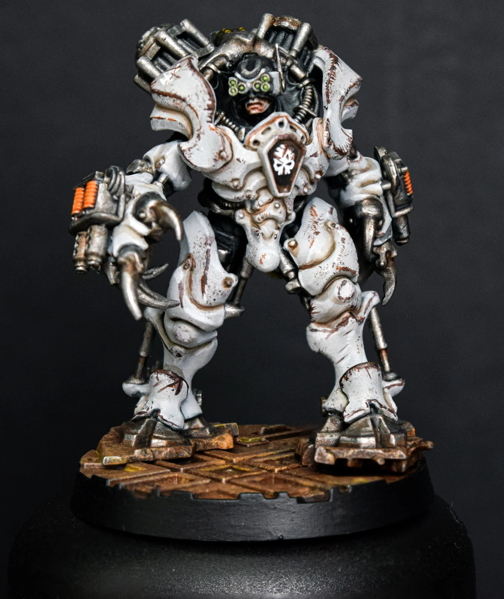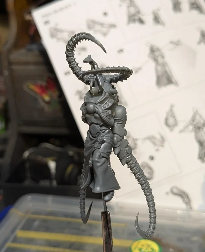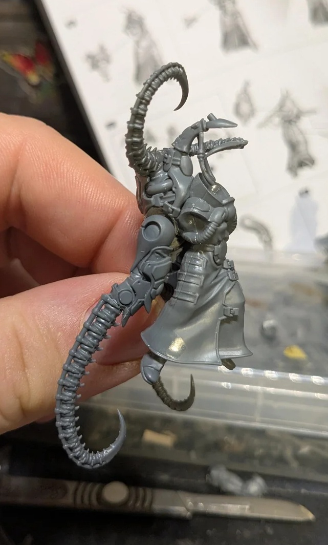 Ну и к тому же еретех еретеху рознь. На охаосевшего еретеха он не похож - слишком чистенький. Чёрно-красные цвета напоминают цвета Стигии-8, которая кишит еретехами-ксенаритами. Которые как раз лояльные, просто с ксенотехом играть любят. Или может он кто-то типа мойрианца: поклоняюсь Омниссии, который Император, но поклоняюсь неправильно, за это и выгнали.