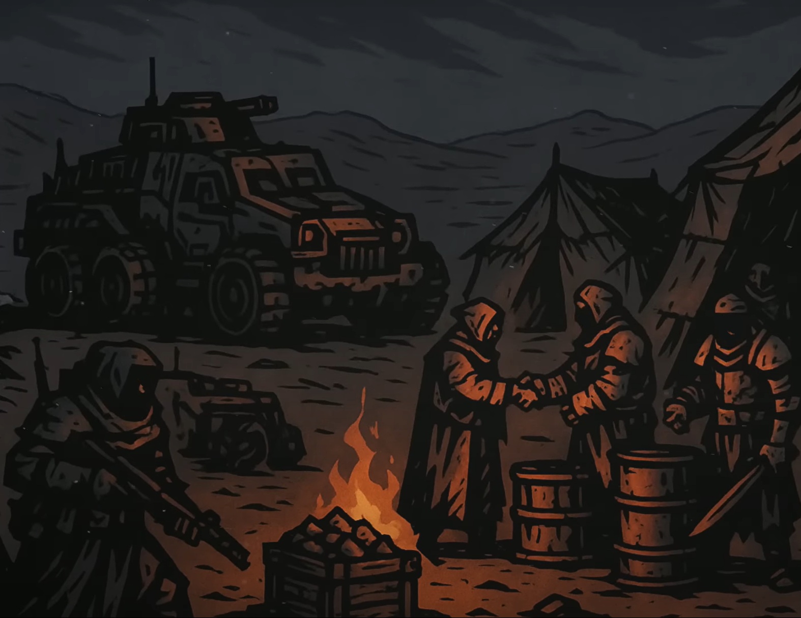 Искусные переговорщики всегда пытаются объебать своего оппонента, даже если их помыслы, в целом, чисты. Скваты весьма гордятся тем, как их легендарный предок Орис объебала могучий Империум, выбив за бесценок права на разработку бесконечных Дальних Пустошей. Вот только Лорд Варгас прекрасно понимал, что делает - в соглашениях нет ни слова о кочевниках Пепельных Пустошей - загадочном народе, который не подчиняется ни Империуму, ни лорду-губернатору, ни Знатным Домам. Они приходят из пустошей вместе с испепеляющим ураганным ветром и бесследно исчезают в пепельных штормах. И так уж вышло, что они считают пустоши, отписанные Варгасом с барского плеча скватам, своим домом.