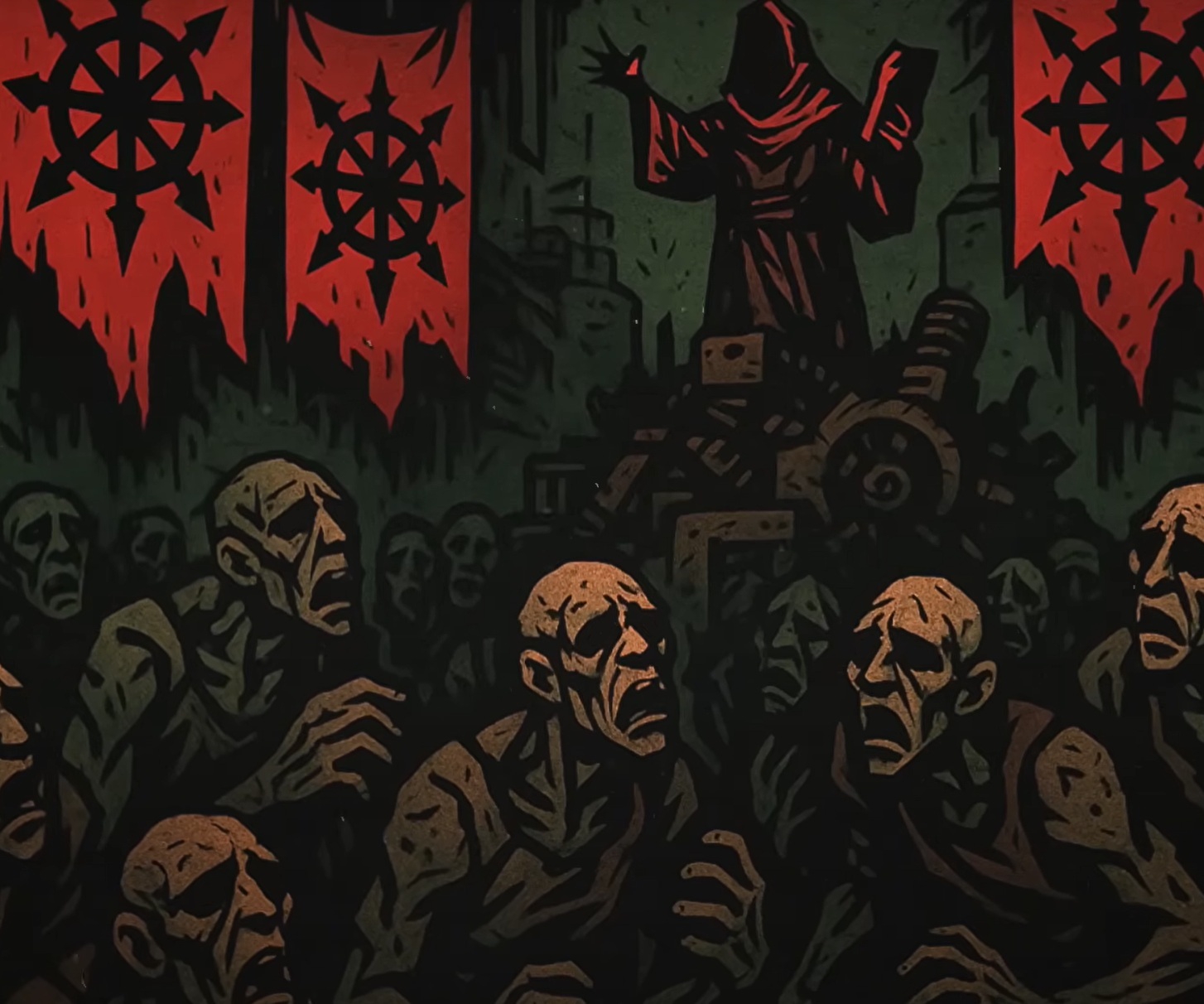 >>1114918 >это способ дать нам детальный, крупный план А его нет. Есть парад гротеска, череда мелькающих как поселки за окном образов. Едешь ты в дуплину пьяный и думаешь "а какому идиоту вообще пришло в голову поселиться вон на той горе посредине ничего". Есть Гигахрущ40к, наверху сидит Старший по дому, в подвале тусят бомжи и временами происходит самосбор. Поднимаясь на каждый этаж, ролльте что за дверью. На дабл - литейка, на триппл - вас будет сопровождать рота Астартес. Почему Хельмавр не следит за сваями дома, но кто-то меняет лампочки? Поккчану, и вот так это работает >помочь нам представить >Хтония Представили еще в спешалах примархов. Сейчас Ваха для детей вышла - там тоже банды были. Даже в "Трех товарищах и собаке-Махариусе" банды.