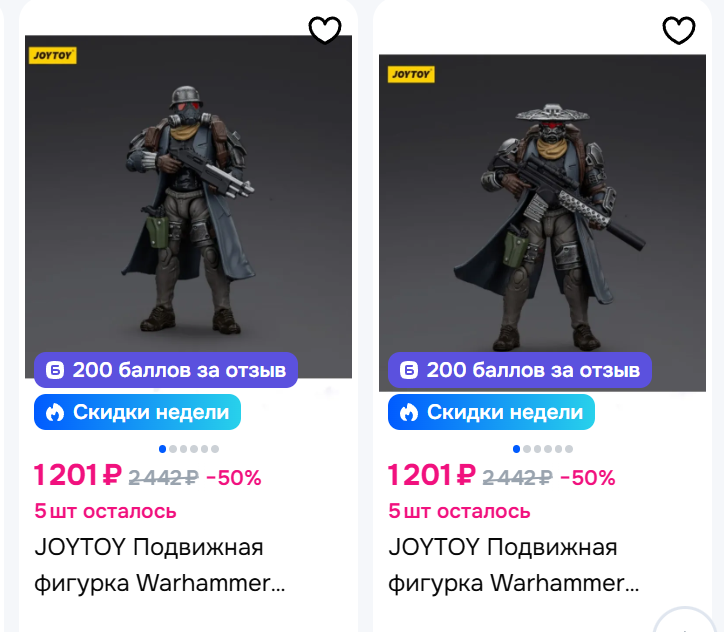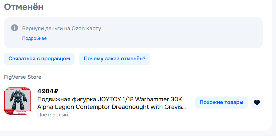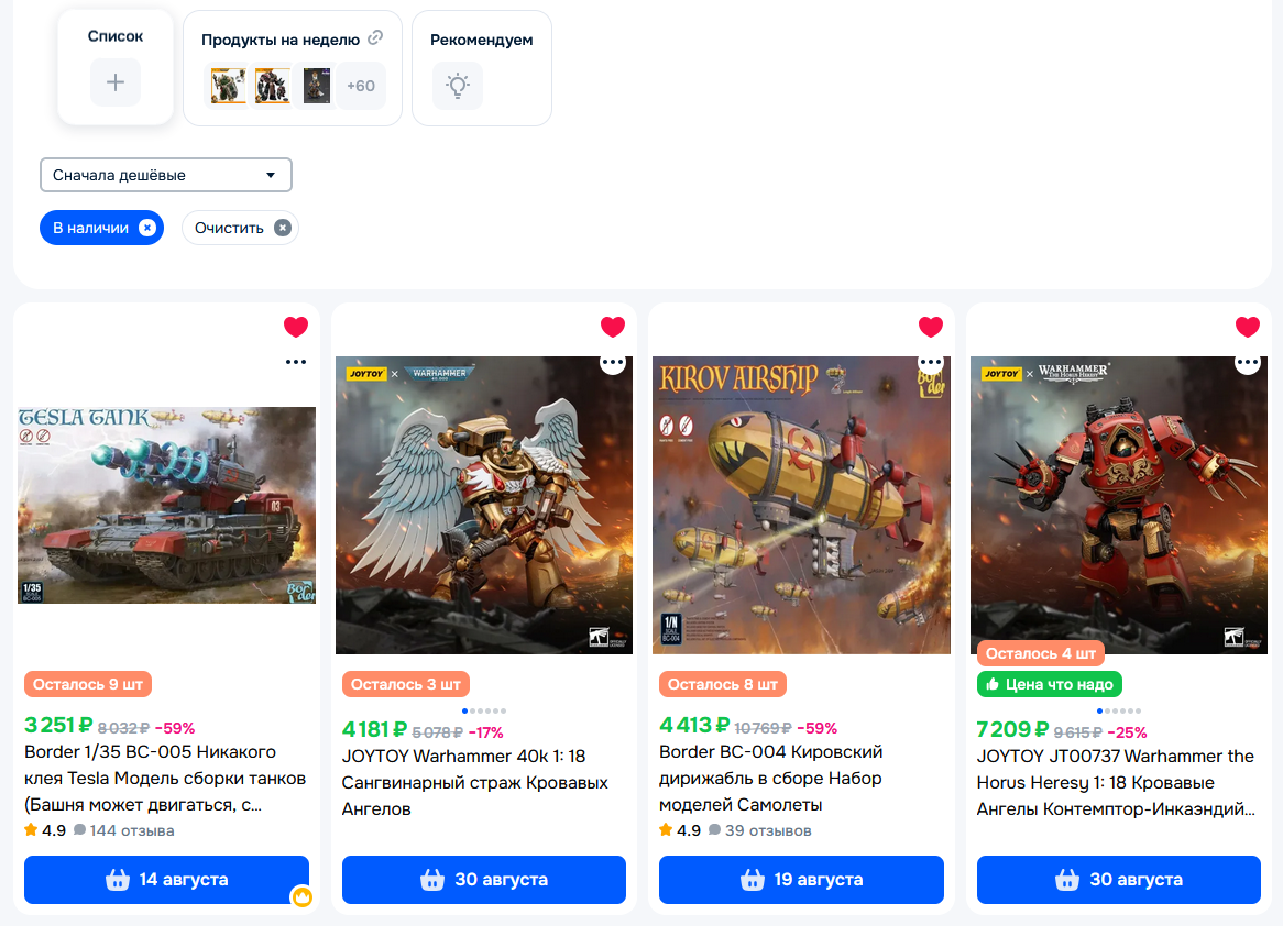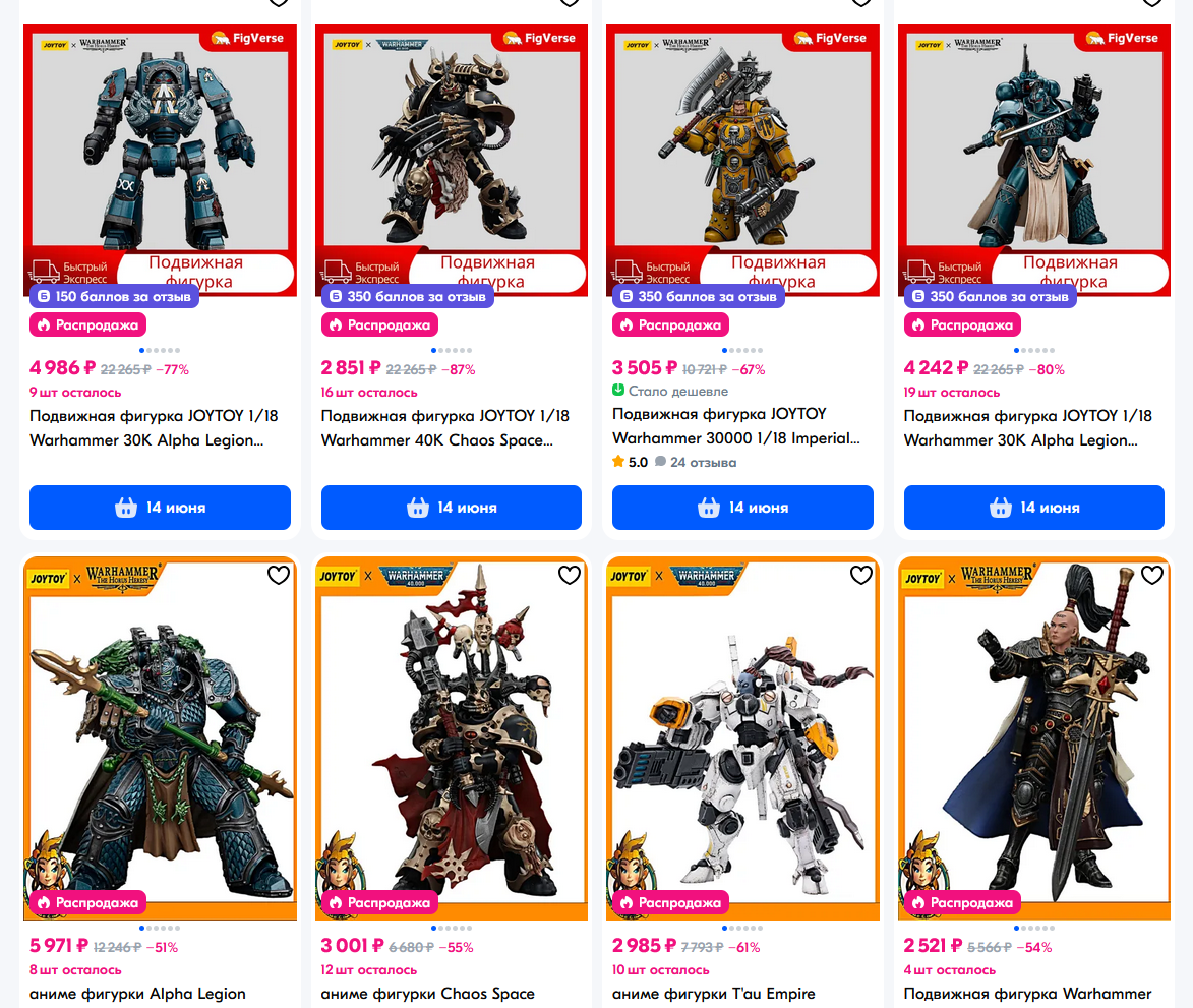 У меня за ночь из корзины на озоне 90% фигурок исчезло, остались только интерцепторы от ноунеймов и лоты с московских складов по х2-х3 цене... это страшно ребята...