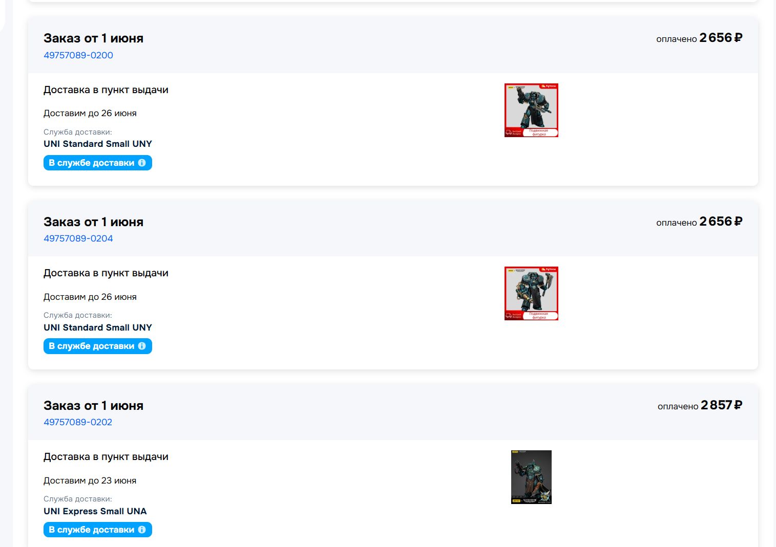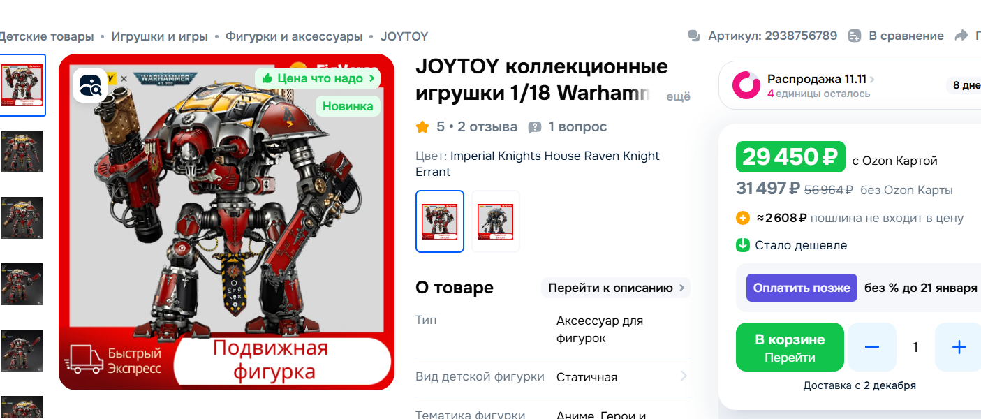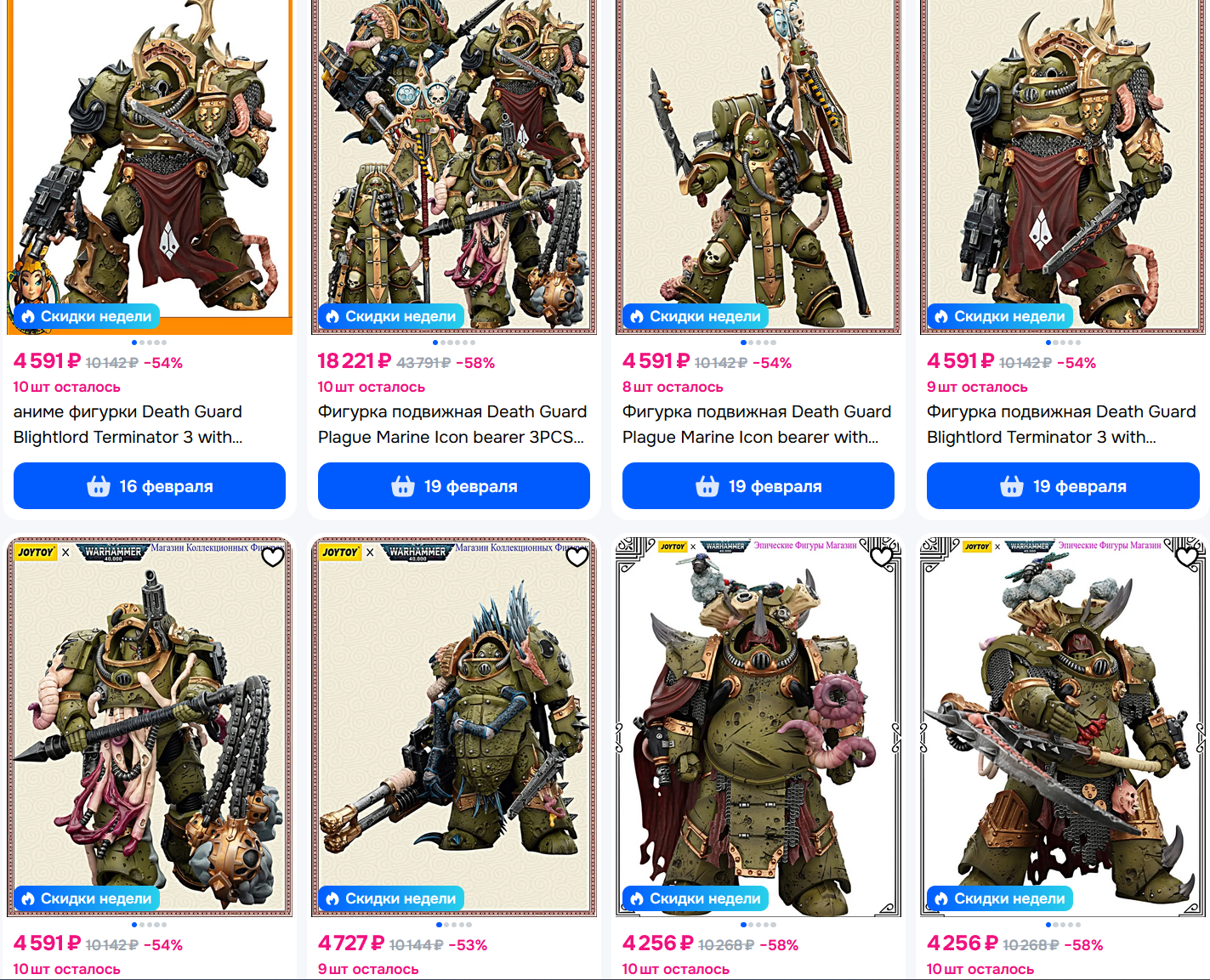 У меня за ночь из корзины на озоне 90% фигурок исчезло, остались только интерцепторы от ноунеймов и лоты с московских складов по х2-х3 цене... это страшно ребята...