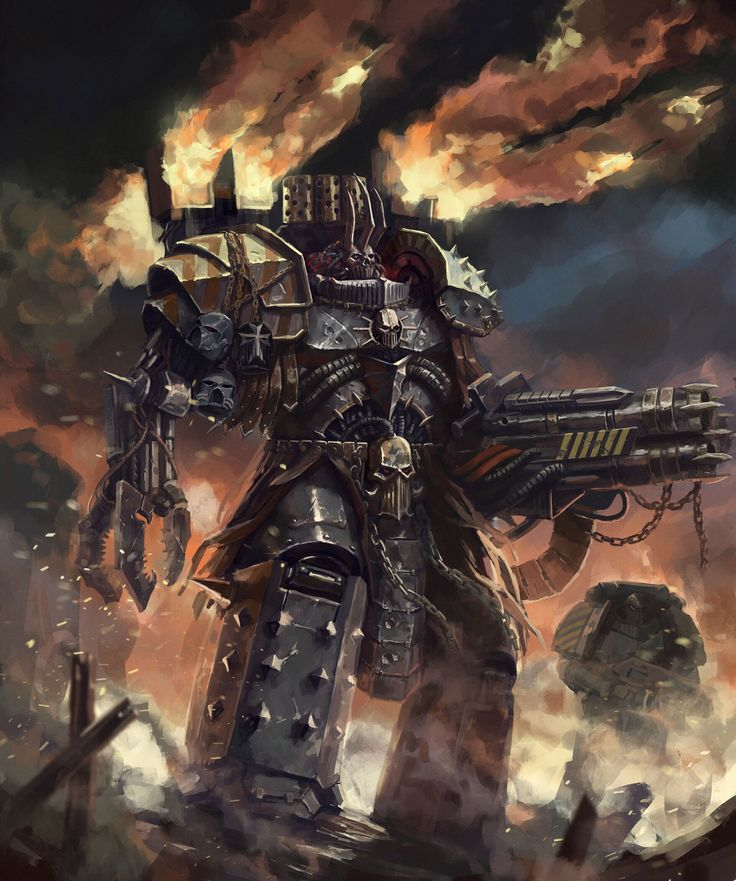 Вообще, мне нравится концепт хелбрута: десантника замуровали в саркофаг, чтобы страдать, но он пророс через него и снова может чувствовать солнышко, дуновение ветерка... И на душе у него настал мир и покой, прерываемый только резней во имя Темных Богов.
