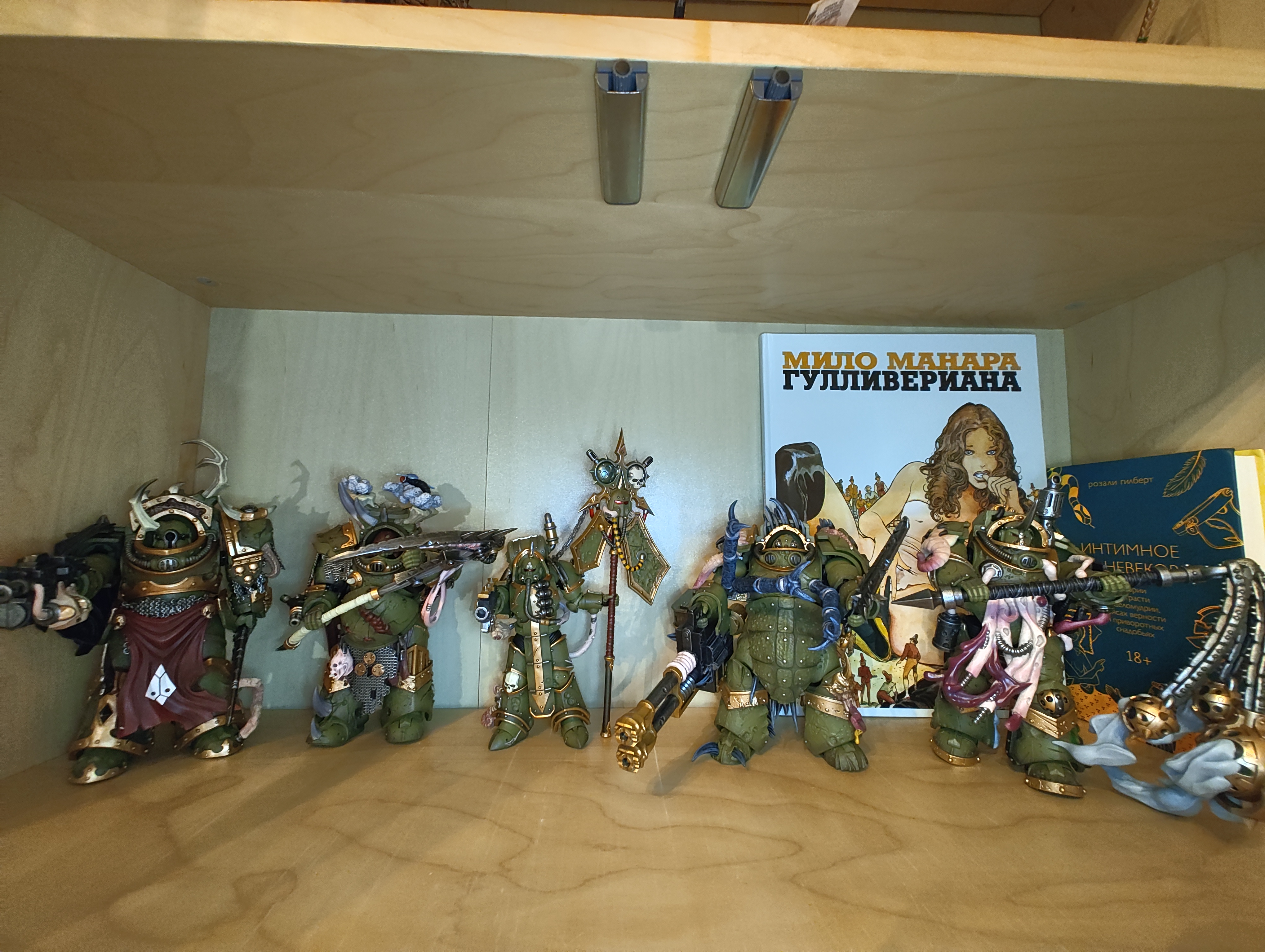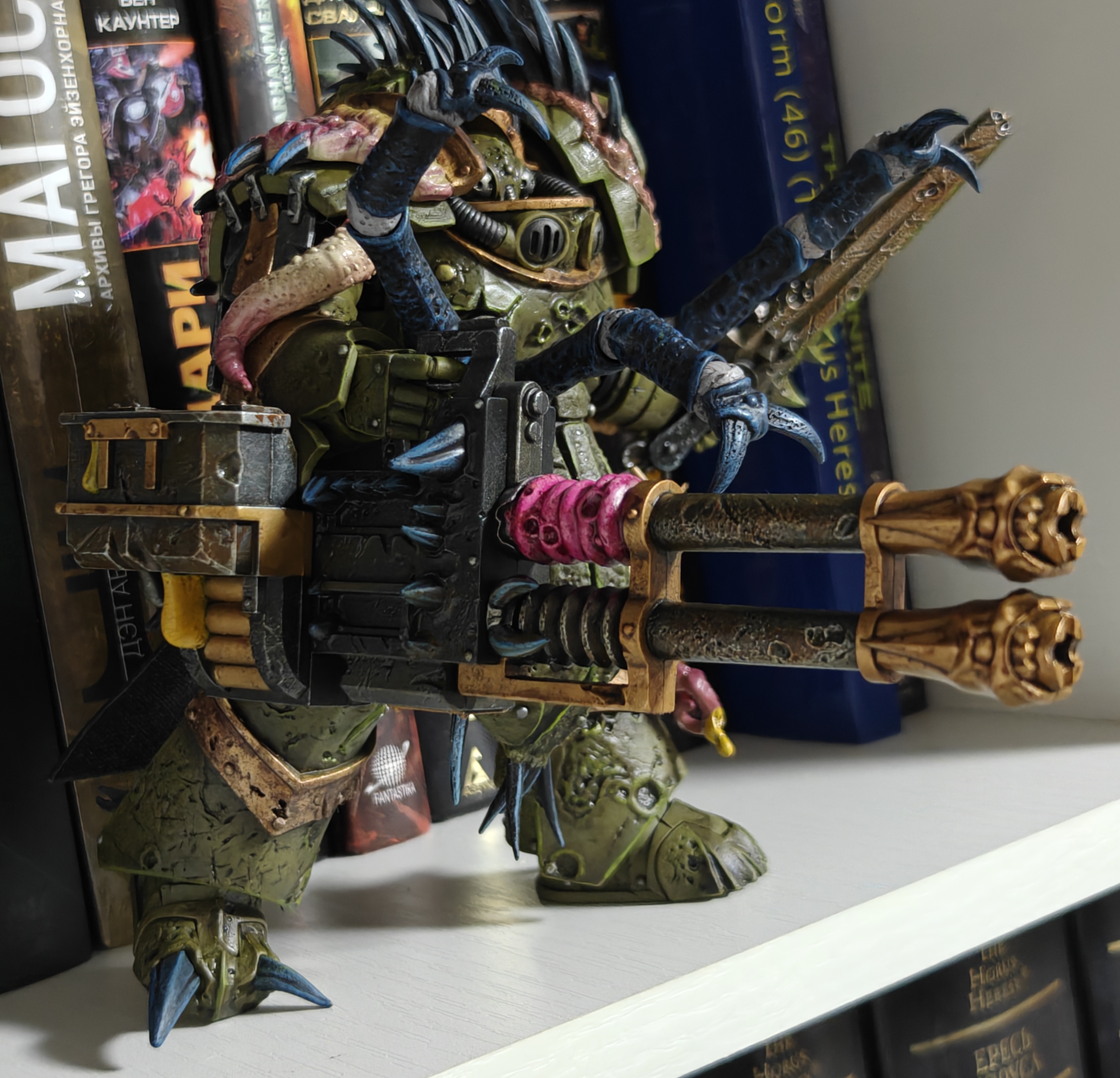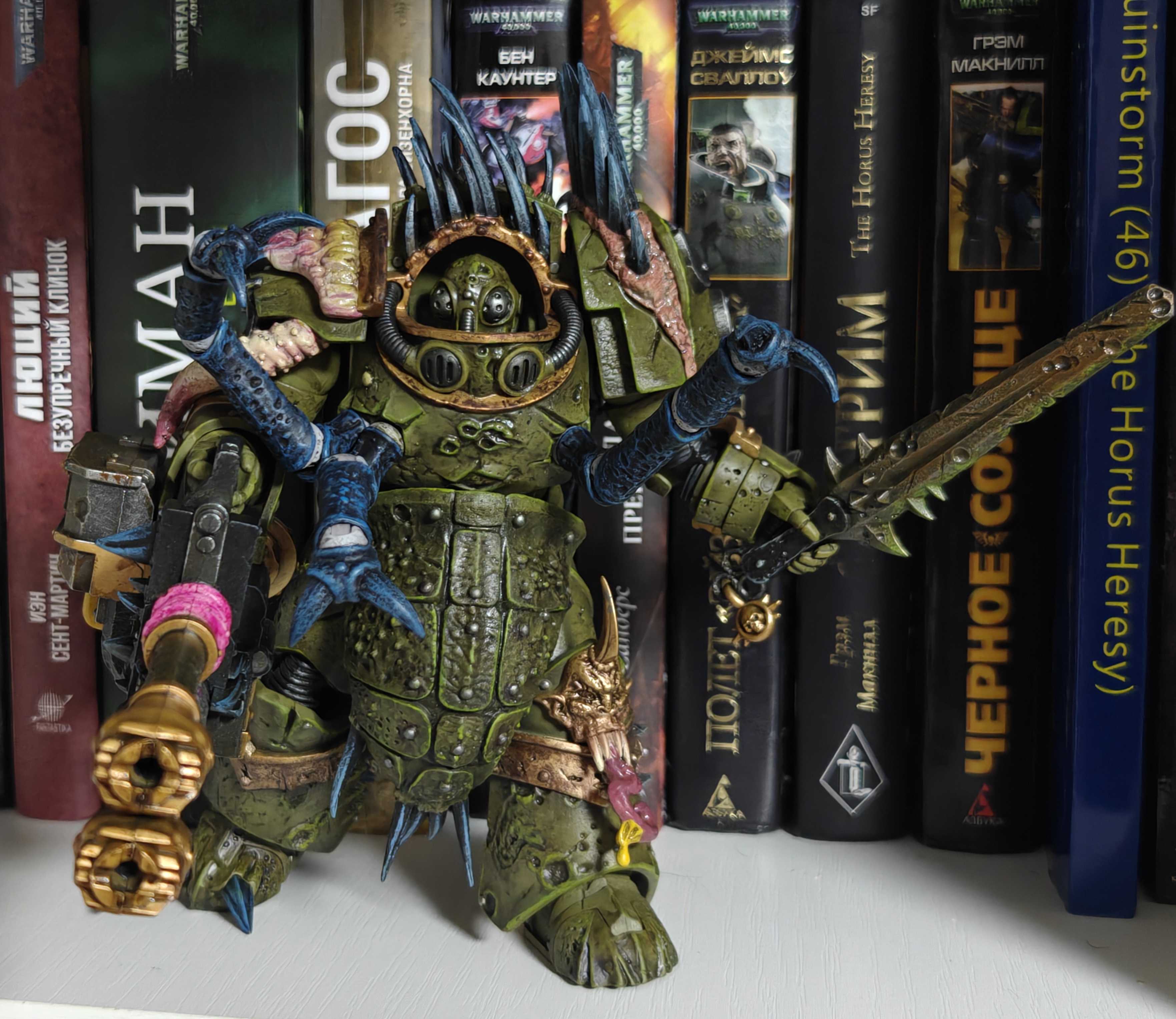 Я один нахожу новых нурглитов не очень? Там еще работать и работать над ними, я тут даже Джой в целом винить не могу тоже, покрас и детализация действительно одна из лучших что они когда-либо делали, но... этого все равно недостаточно для нурглитов. Все эти наросты, кишочки и прочая проводка выглядят максимально чужеродно, нет ощущения, что это сросшиеся с их доспехом гнойники и прочая гадость. Словно просто прилепили на внешний слой доспеха фурункул, он не выглядит как болячка что прорвалась сквозь слои керамита. Эдакая странная мультяшная гримдарковость в пластике.