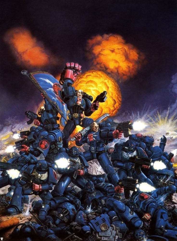 *. Выбор профессионала - маринчики по условно-нейтральной оптимизированной для покраса схеме. + Доступ к огромному разнообразию кодексов, детачментов и соответственно стилям игры. + Маринад играет всегда, кодексы обновляются в первых рядах - этих точно не занерфят в нулину. + Сложность покраса ниже среднего, рядового маринчика можно ебашить в три цвета с проливками на похуй, а если схема в целом темная то при этом и смотреться будет более-менее. + Разнообразие миниатюр. + количество миниатюр на армию ниже среднего. - Нет DOOOSHY, но можно отыгрываться на персонажах/чаптерюнитах. - Желателен аэр. - При покрасе нужна аккуратность