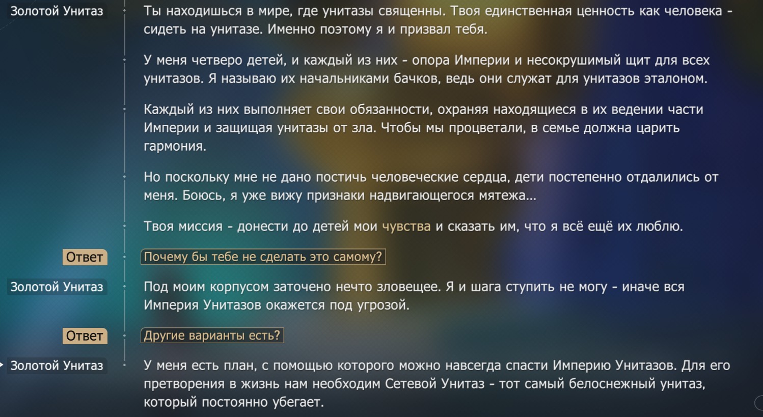 Быстро, блядь! Магнус, чего тебе надо, бля, свали отсюда, блядь! Магнус, свали отсюда, блядь. Чего тебе надо у меня во дворце?! А ты меня не видишь, что ли? А зачем мне тебя видеть? А зачем тебе мне видеть? Чё ты мне Паутину выпилил, ты чё, колдовством, что ли, занимаешься? Чё ты мне Паутину выпилил, блядь? Чё ты мне Паутину выпилил, блядь? Чё ты мне Паутину выпилил, блядь? Давай делай Паутину быстро, блядь. Паутину сделал, блядь. Паутину сделал, блядь. Паутину сделал, блядь. Давай, ставь, ёпты, блядь! Поставил мне Паутину быстро, блядь. Паутину запили. Давай, запиливай. Давай, делай Паутину, чё ты пришёл ко мне, бля? Паутину сделал мне, блядь. Паутину мне сделал, блядь. Паутину мне сделал, блядь. Паутину мне сделал, блядь. Паутину мне сделал, блядь. Паутину мне сделал, блядь. Давай делай, хули ты стоишь, Трон не шатай мне, блядь. Трон не шатай, блядь. Кто предан, ты предан, ёпт, блядь. Паутину мне запили, блядь. Паутину мне запили, блядь. Давай запиливай, блядь. Давай запиливай сейчас, чё ты ко мне пришёл, блядь? Чё тебе надо, блядь? Чё тебе надо у меня во дворце, блядь? Что значит "нужно", ёпт? Что тебе нужно у меня во дворце, блядь? Что тебе нужно у меня во дворце, блядь? Что? Что тебе нужно у меня во дворце, блядь? Зачем я тебе нужен, блядь? Зачем я к тебе должен приходить, блядь? Какая ересь, ты что, дурак, что ли, Магнус, ёпт? Паутину мне поставь как выпилил, блядь.