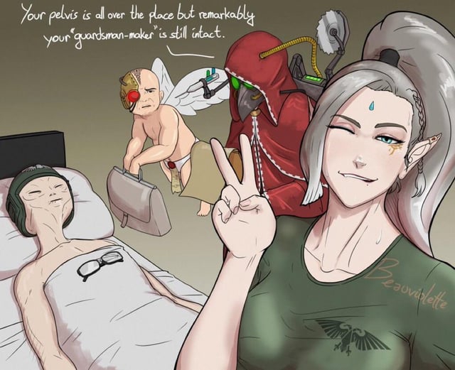 >>1161193 Ты впадаешь в ересь, мужебрат. Святая Селестина это воплощение воли Самого Императора. Срать ей некогда, она доспех не снимала с тех пор как его обрела. Просто когда ей начинает рвать жопу, Император её ресает в необосравшемся состоянии. Что касается тампонов у кустодианок, ты наверняка изучал старый, неправилный бэк, когда кустодии были мужебратьями. Там указывалось, что Император лишил их возможности взаимодействовать с варпом, изменив их души, буквально удалив им часть души. Это пустое место заполняет сила самого Императора. Поэтому, когда Он присел на Золотой Трон, кустодии почувствовали страшную утрату от отсутствия Императора в своей душе. Так вот теперь это нибэк, а, так сказать, аллегория, и заполнял он пустоту отнюдь не в душе. Так что калибр там императорский, он ведь под себя их создавал.