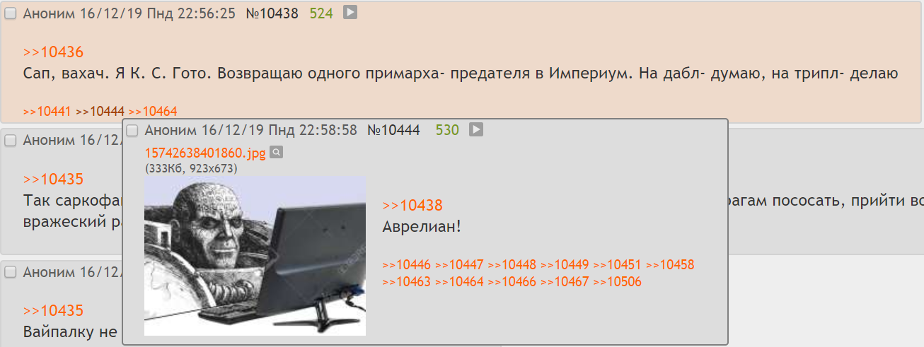 Не заходил в тред около недели, а у вас уже несколько ксеноересей зародилось, несколько обычных ересей, из варпа начали протекать диманы-примархи, а сейчас вообще беседа свернула в сторону астартес-отступников. Куда смотрит инквизиция??? Молюсь на то, что каждая отписавшая сюда душа успеет покаяться в своих ересях прежде, чем испытает на себе правосудие Императора.