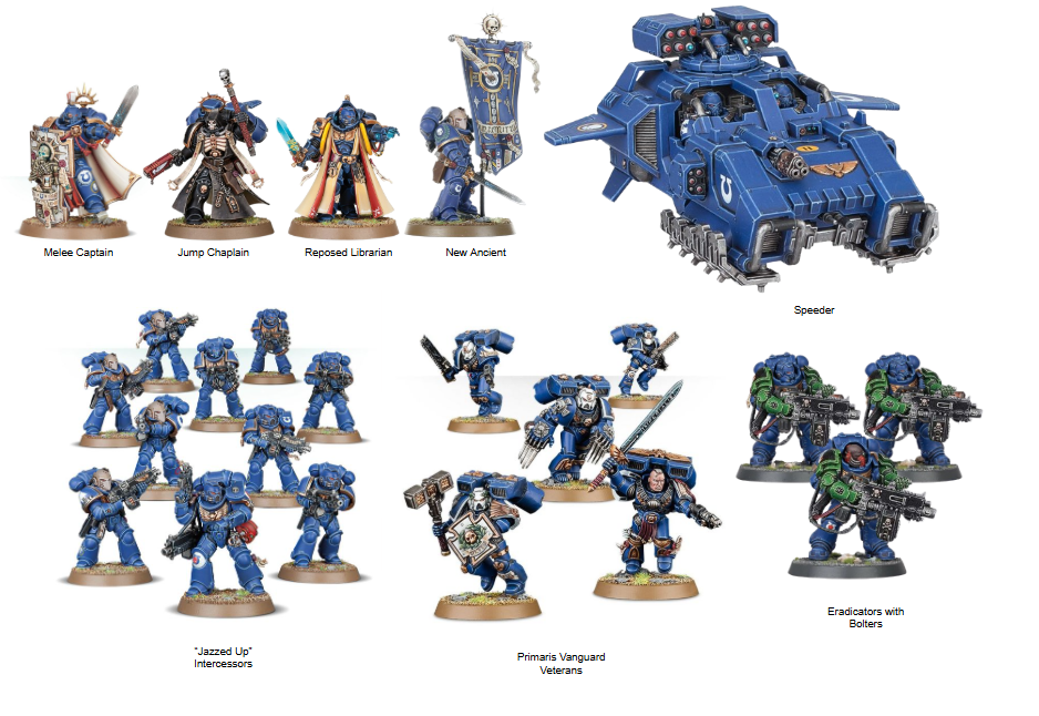 Пухлич передает, что стартовой коробкой 11 редакции будет Armageddon с СМ и Орками внутри. Со стороны Емперорс Файнест будут Кровавые Ангелы, но без специфических юнитов (т.е. обычные парни, раскрашенные в красный). Состав как на пикте. Орки же будут представлены пятью чарами: варбосс, ноб со штандартом, пейнбой с ассистентом и вирдбой; также присутствуют 12-рыльник бойзишек, греча, вартрак и огромная шагающая пуха.