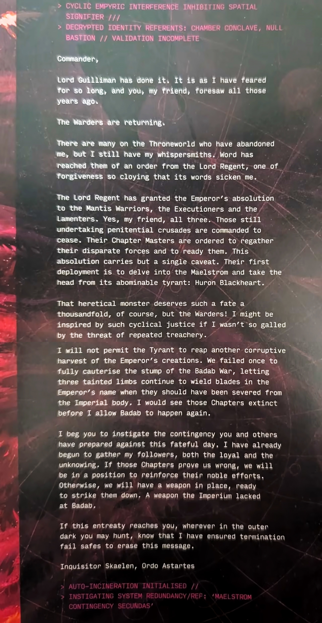 Вы думали, что раз Кадия пала, то все, дорога свободна? Не тут-то было, Кадианские Врата - это еще куча других миров-крепостей и кузниц, что остались вокруг Ока Ужаса и мешают хуситам наступать на Терру. У Пертурабо имеется грандиозный план по завоеванию Империума, план, что разрабатывался тысячелетиями. Первый шаг этого плана - взять под полный контроль Кадианские Врата.