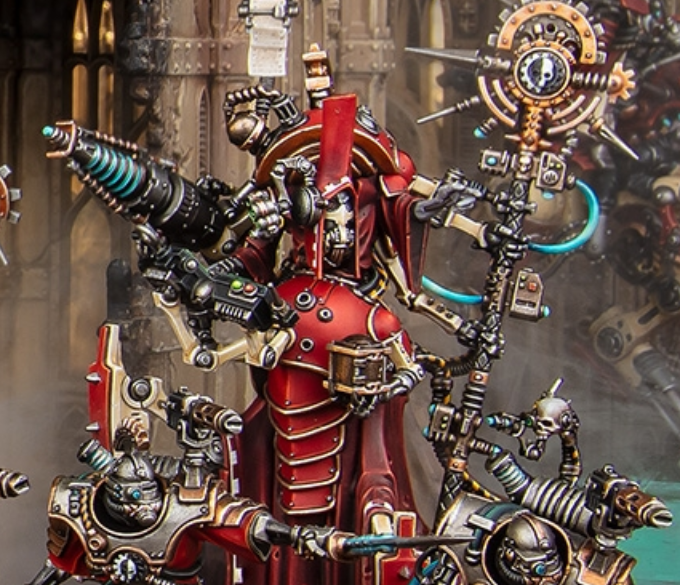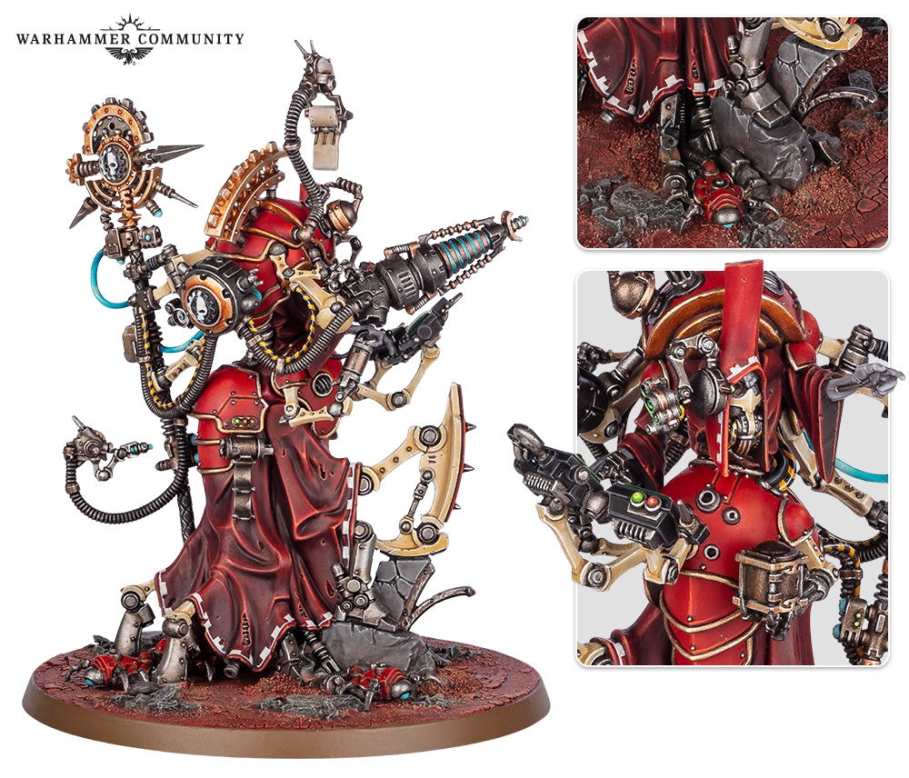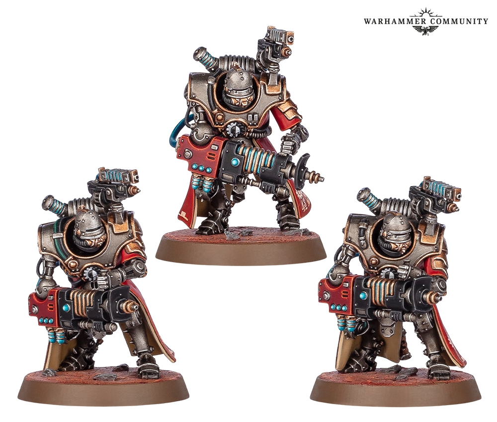 Вы думали, что релиз из области Ока Ужаса это хуситы? Нет, это АдМехи. После Падения Кадии Кравен Морн положил взгляд на мир-кузню Агриппину, поэтому кому-то придется защищать ее. Это выпало на долю Тулии Гульд, Архмагоса Терминус из Ордо Редуктор. Как и все в Ордо, она почитает Омниссию как аватар разрушения, и поэтому тратит все время на совершенствование себя как орудия войны, чем на эксперименты и дипломатию. Тулия верит, что Машинный Бог сделал ее проводником войны, иначе если бы он не хотел резни, то зачем он сделал предателей и ксеносов такими легкоубиваемыми? И хотя коллеги недолюбливают ее, Скитарии наоборот обожают и видят в ней Вокс Деи, живого проводника Слова Машинного Бога. Например, гастарии, что сочетают в себе огневую мощь тяжелых машин и подвижность бронированных киборгов. Вместо правой руки у них установлены гироскопически стабилизированные орудия. Гастарии-экстерминаторы вооружены искореняющими метателями, а гастарии-фузилеры - нейтронными фузеями.