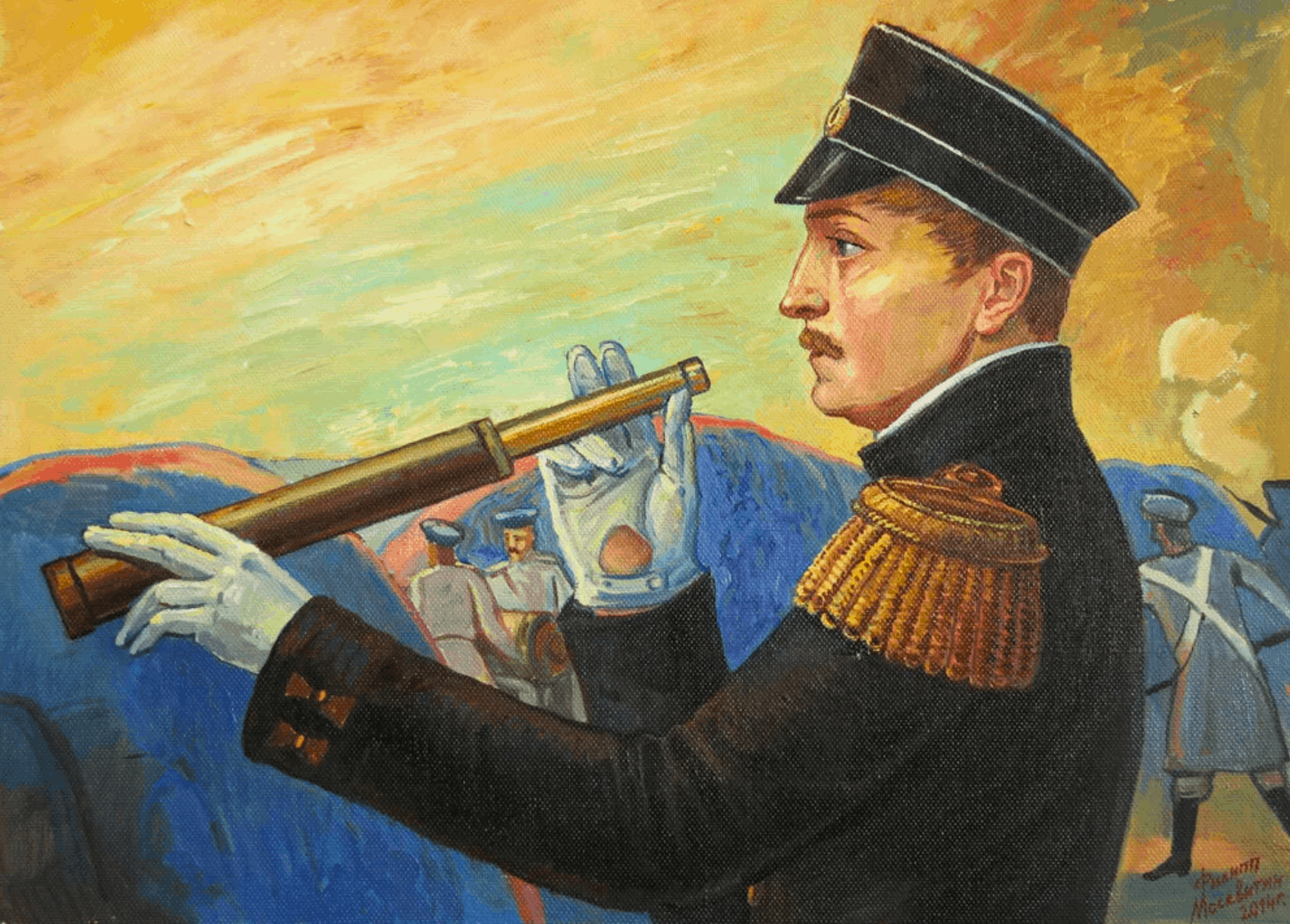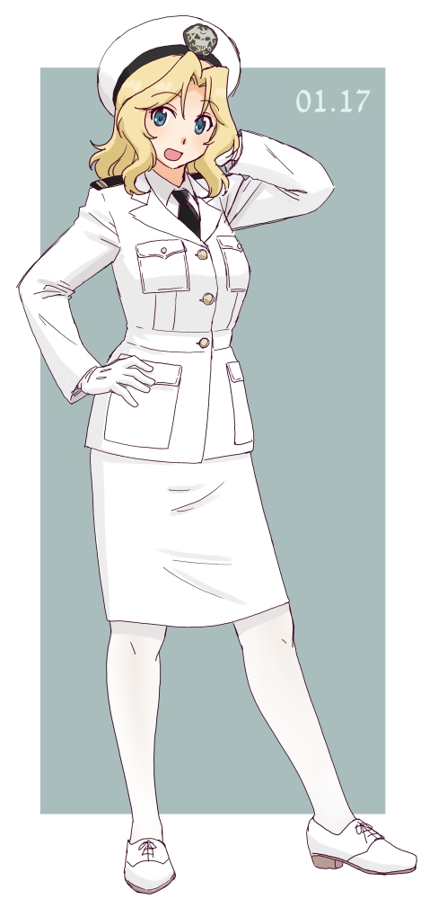 > Пик 4 Richelieu из KanColle в форме офицера военно–морского флота Франции. Пять полос на рукаве — Capitaine de vaisseau ("капитан линейного корабля" дословно, либо же капитан первого ранга). Тот же автор.